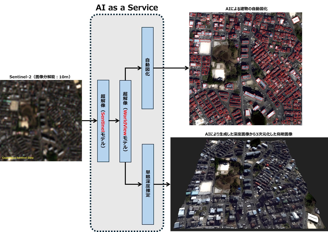 Sentinel-2, Capella(SAR), GRUS, WorldView2,3など対応した衛星画像解析 “AI as a Service” をデモ出展