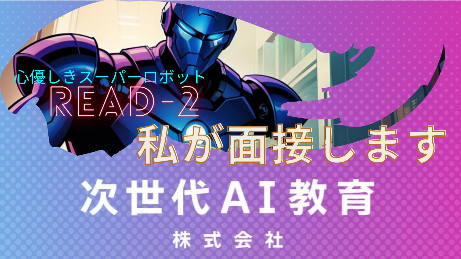 今回の面接官には、キャラクターIPが強みのAI情報メディアサイト「AI速報ドットコム」から"Read-2 (リード・ツー) が面接官として参戦!次世代AI教育株式会社を強力にサポートしています。