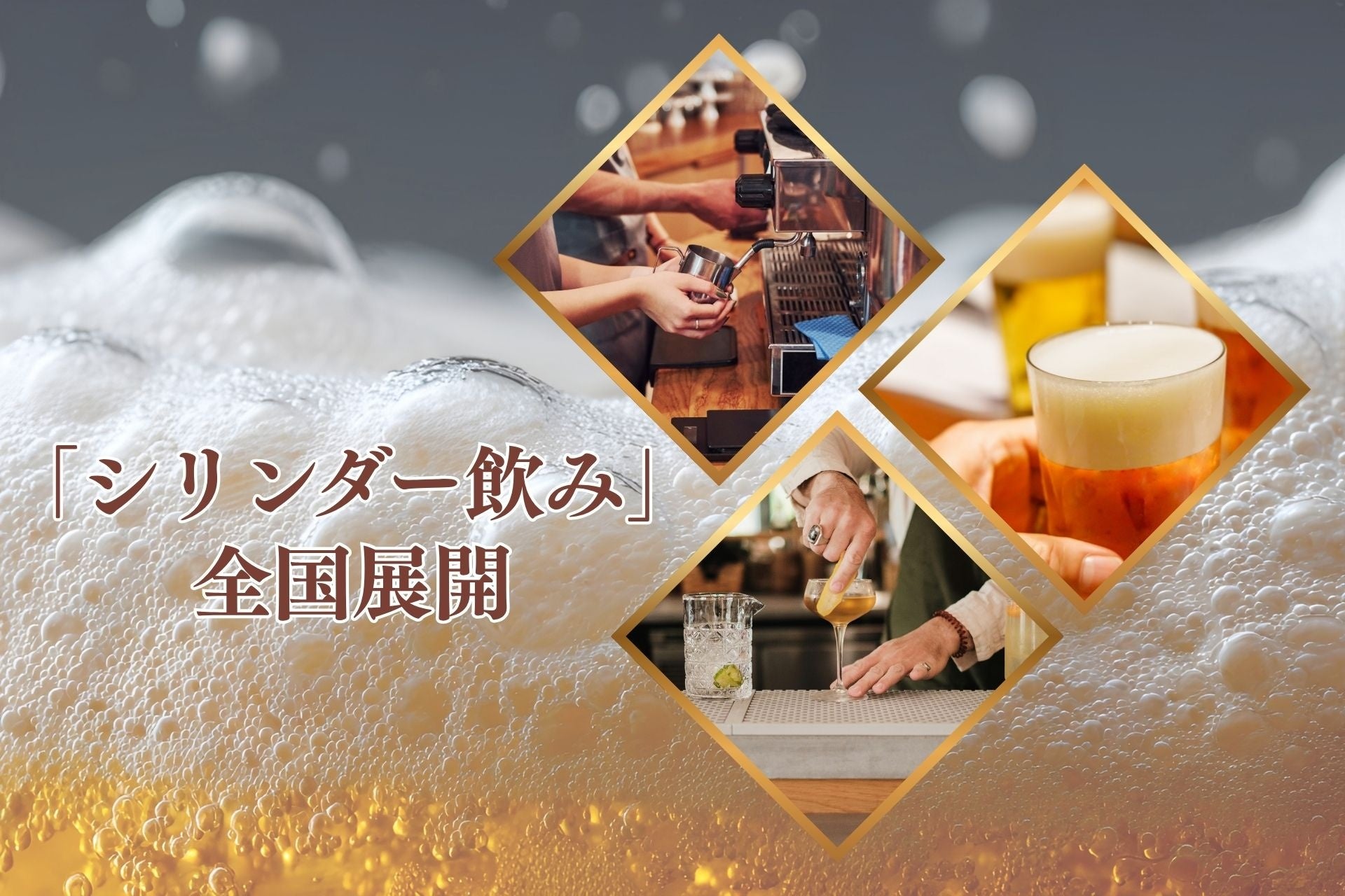 2030年までに、全国のバー・居酒屋・カフェと連携し、ビール・サワーをメスシリンダーで提供する「シリンダー飲み」を全国展開します。