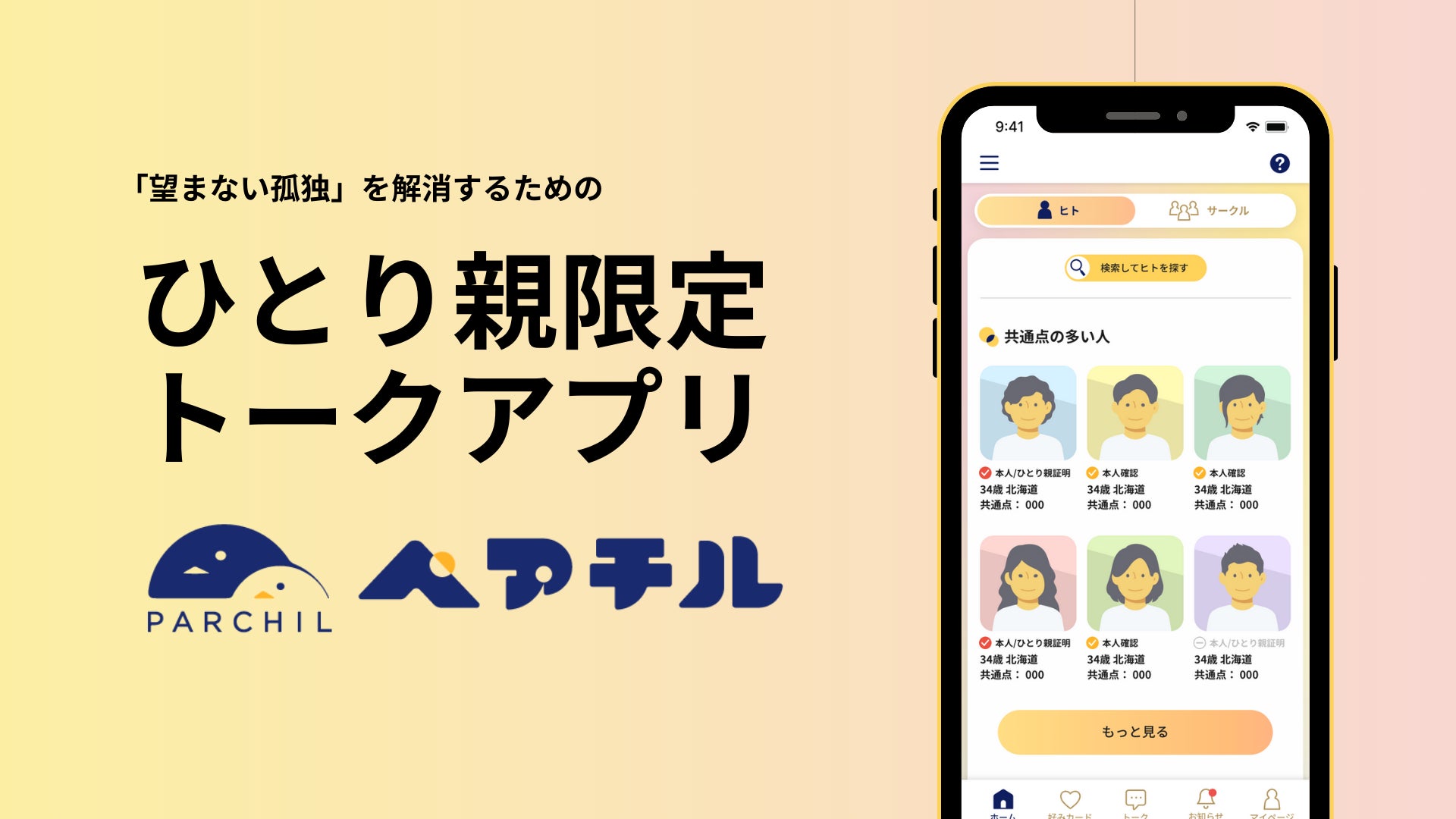 数十名のひとり親の声を反映させた「似た境遇のひとり親同士が繋がれ相談し合えるトークアプリ「ペアチル」です。