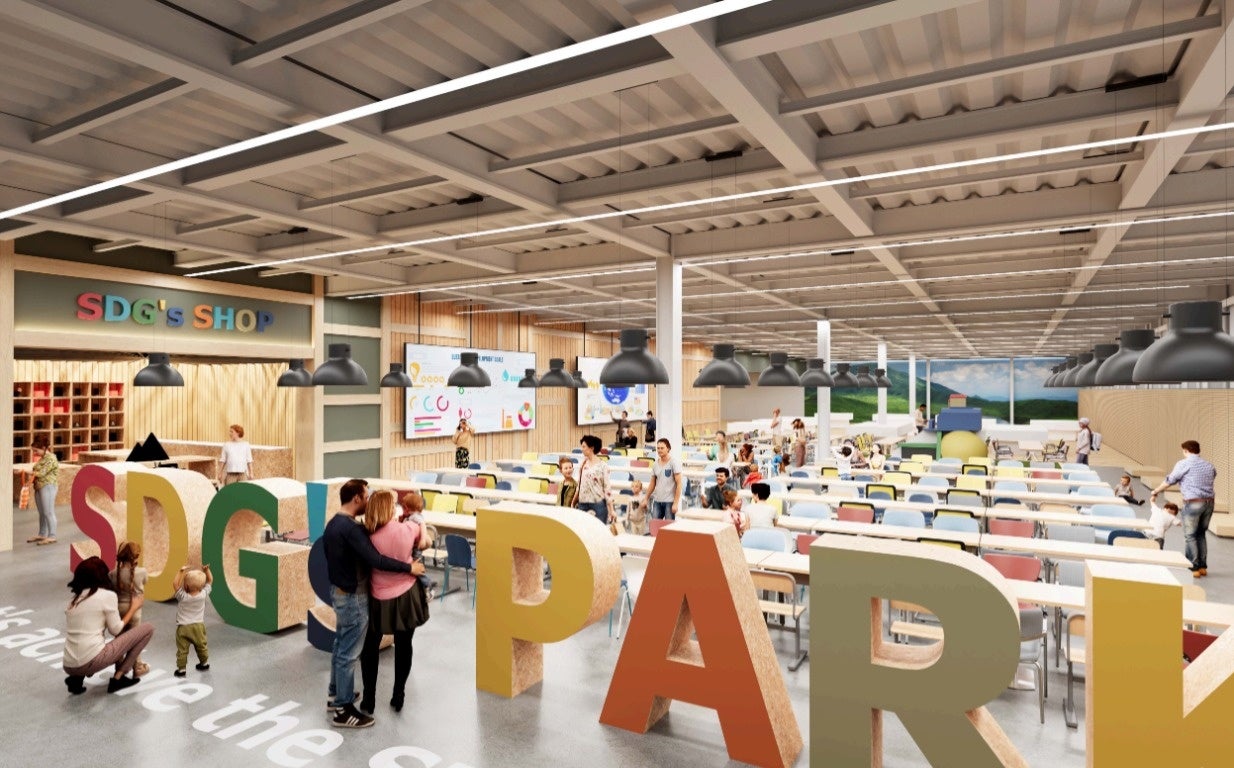 国内外から施設を訪れる修学旅行や社会科見学の児童・生徒などを対象としたSDGsの「実行」と「キャリア」を軸に探究学習を行う『教育テーマパーク』。