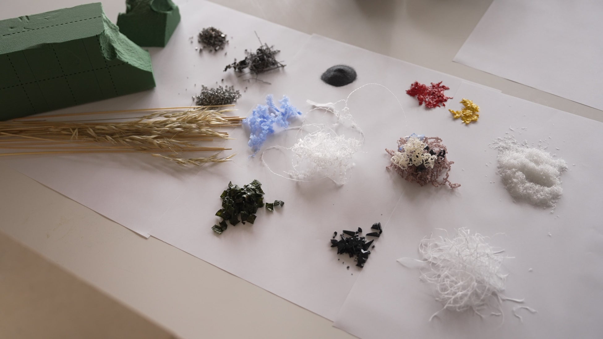 トークセッションでは、本展のフィールドリサーチにてコーディネーターを務めた「ハタノ製作所」代表の波田野 哲二氏と、リサーチで訪れた工場の一つである「シナノ産業」の柳澤 翔太氏を迎え、we+とのクロストークを行います。ふだん見慣れている素材が粉末となり、まったく違った表情をまとうことで見えた景色とは?