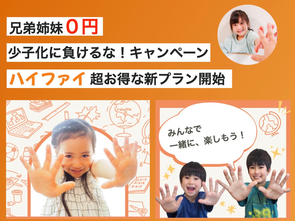「兄弟姉妹0円プラン」出生率1.2過去最低記録を受け、少子化対策として新プラン開始【オンライン習い事コミュニティハイファイ】