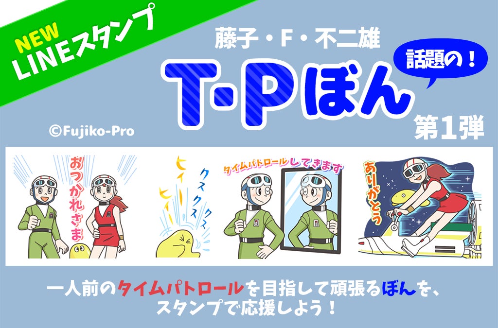 株式会社 藤子・F・不二雄プロ(以下、藤子プロ)は、まんが家 藤子・F・不二雄が描いた「T・Pぼん」(タイムパトロール・ぼん)をLINEスタンプとして発売しました。