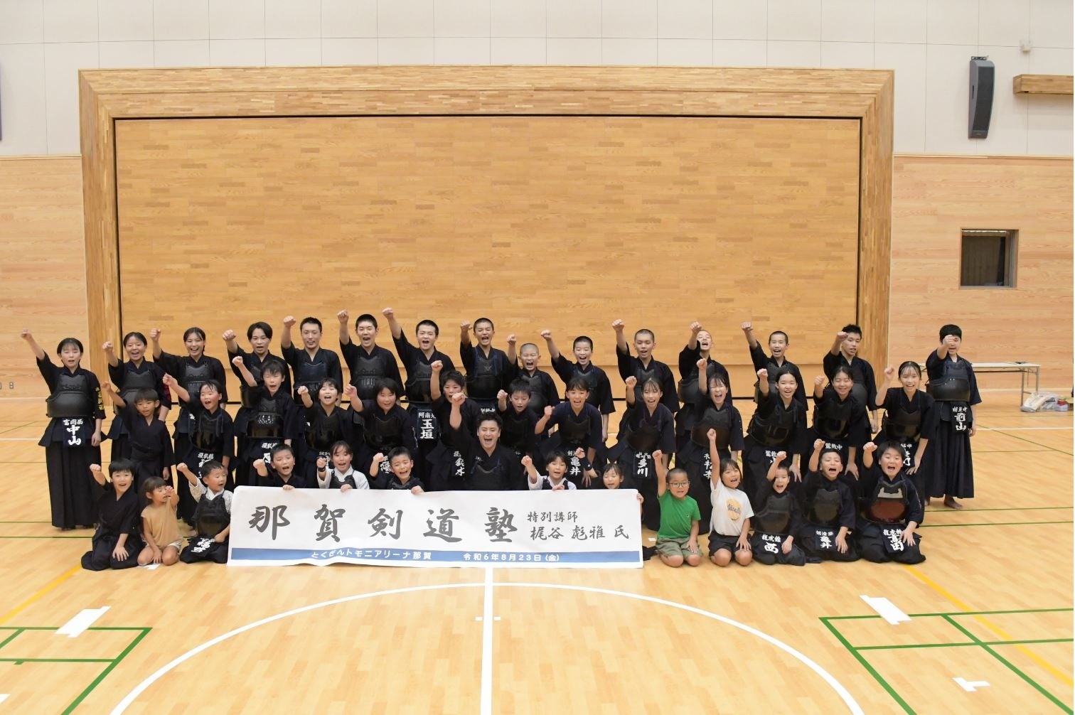 令和6(2024)年8月23・24日、剣道を通じた青少年健全育成の一環として、日本初のプロ剣道家・梶谷彪雅(ひょうが)氏を招聘し、とくぎんトモニアリーナ那賀(那賀町総合体育館)で那賀剣道塾を開催しました。
