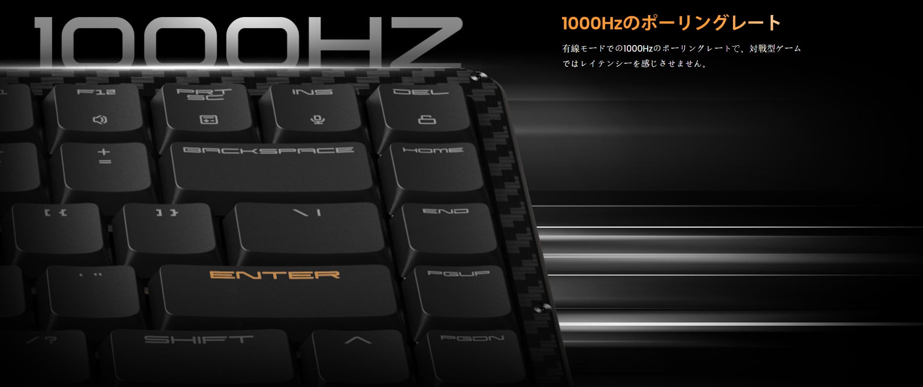 Lofree Edgeは、昨今のゲーミングシーンに対応するために、USB Type-C有線接続時のポーリングレートを1000Hzまで引き上げました。