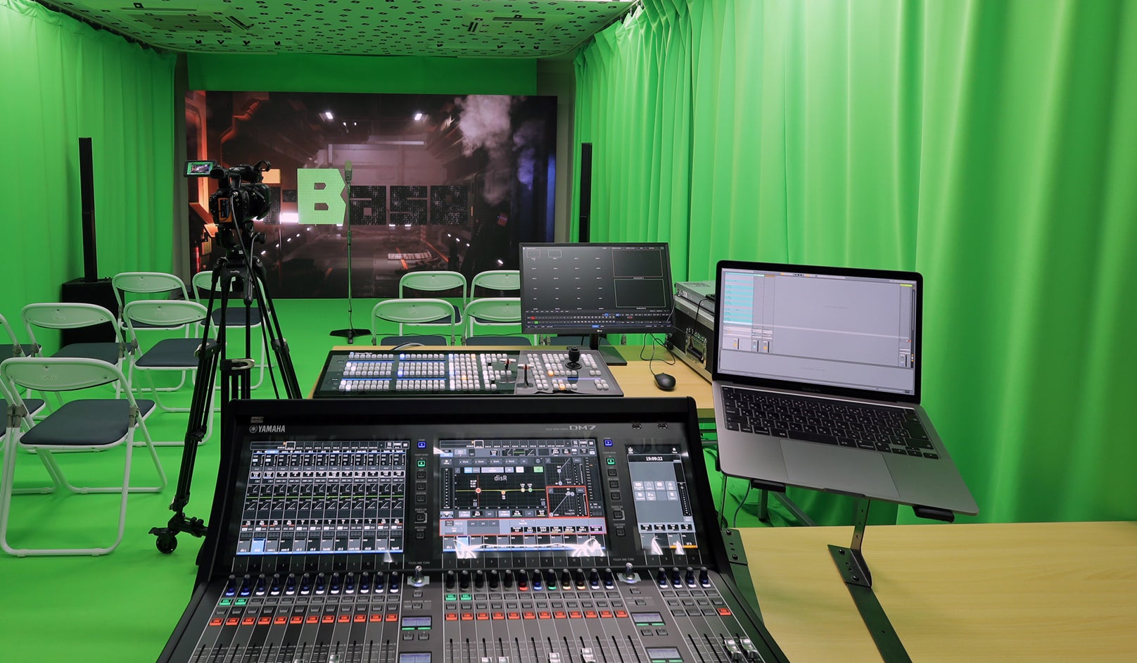 アクティングエリア幅4m x奥行5mの広さを持つ収録スタジオ内には、バーチャルプロダクションスタジオとして最新の設備を備えております。