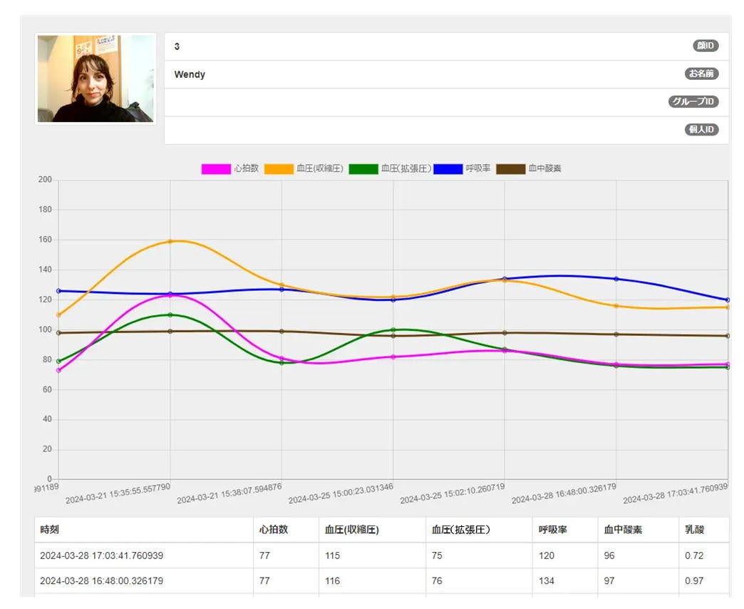 顔画像からバイタルサイン ウェアラブルデバイス不要 気軽に健康状態を推定可能 健康管理を促進します。単一の機器で複数人の健康データを計測できます。