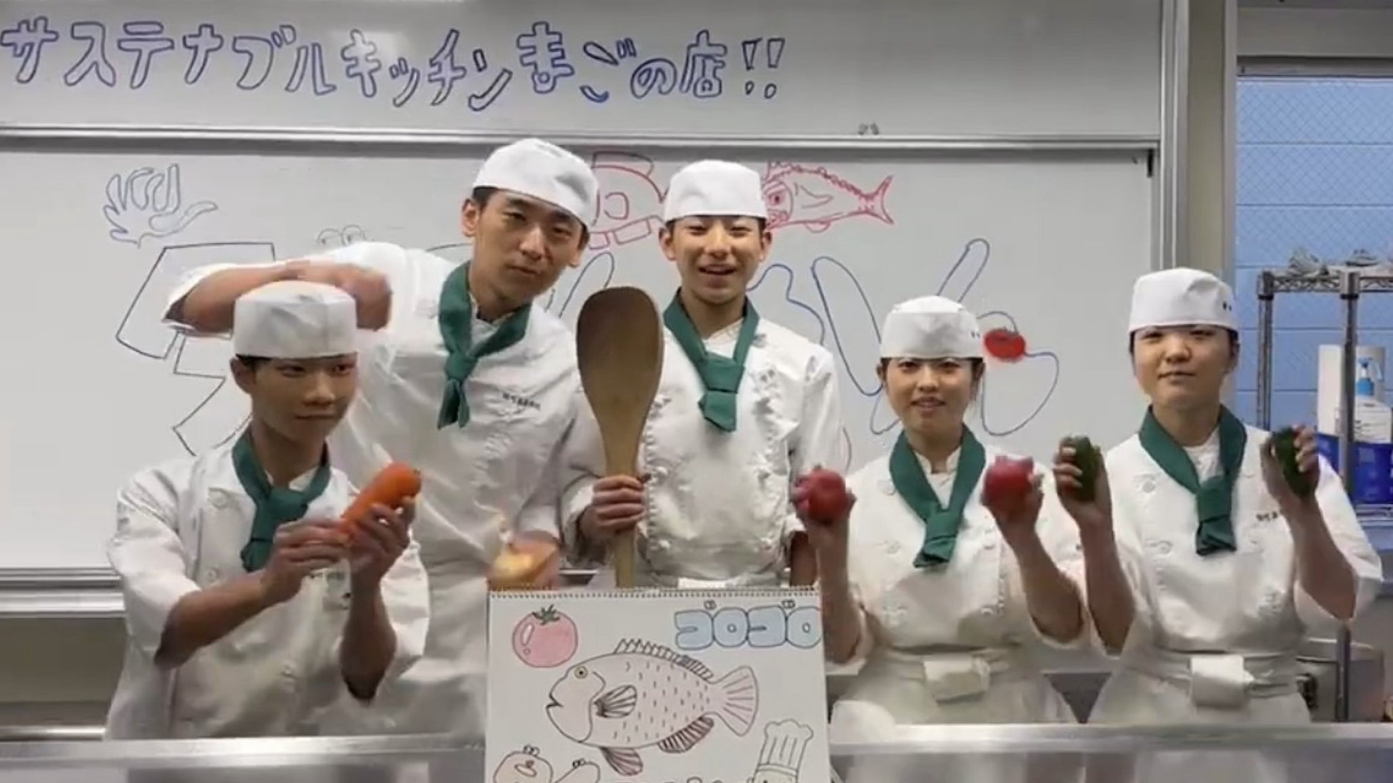 プロの料理人を目指す私たちは、地元で高校生レストラン「サステナブルキッチン まごの店」を運営しています。三重県の食の課題を解決したいという思いで、未利用魚となっているブダイを流通させたいと考えています。たくさんの野菜を使ったブダイのチリコンカンは、多くの栄養が取れ、冷たくても美味しく、災害時でも持っておくと安心できるような商品です。