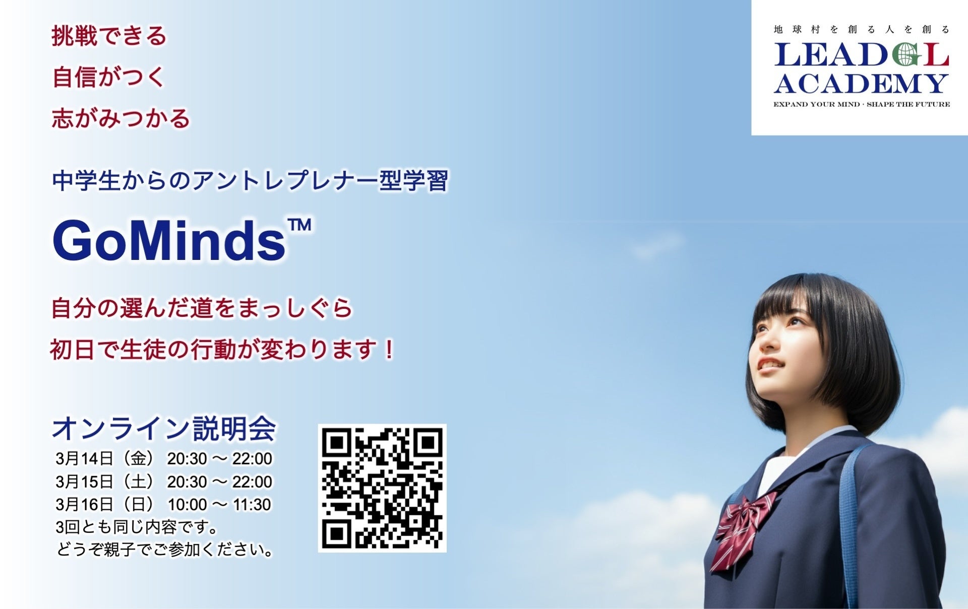 中学生からのアントレプレナー型学習 GoMinds™ オンライン説明会のご案内