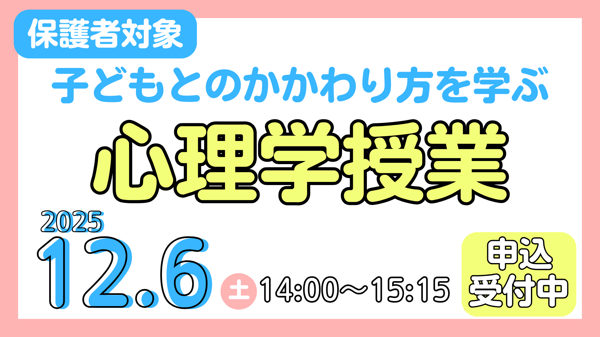 そんな保護者の皆さまのために、子どもへの”伝え方のコツ”を紹介する『保護者のための心理学授業』を開催します。