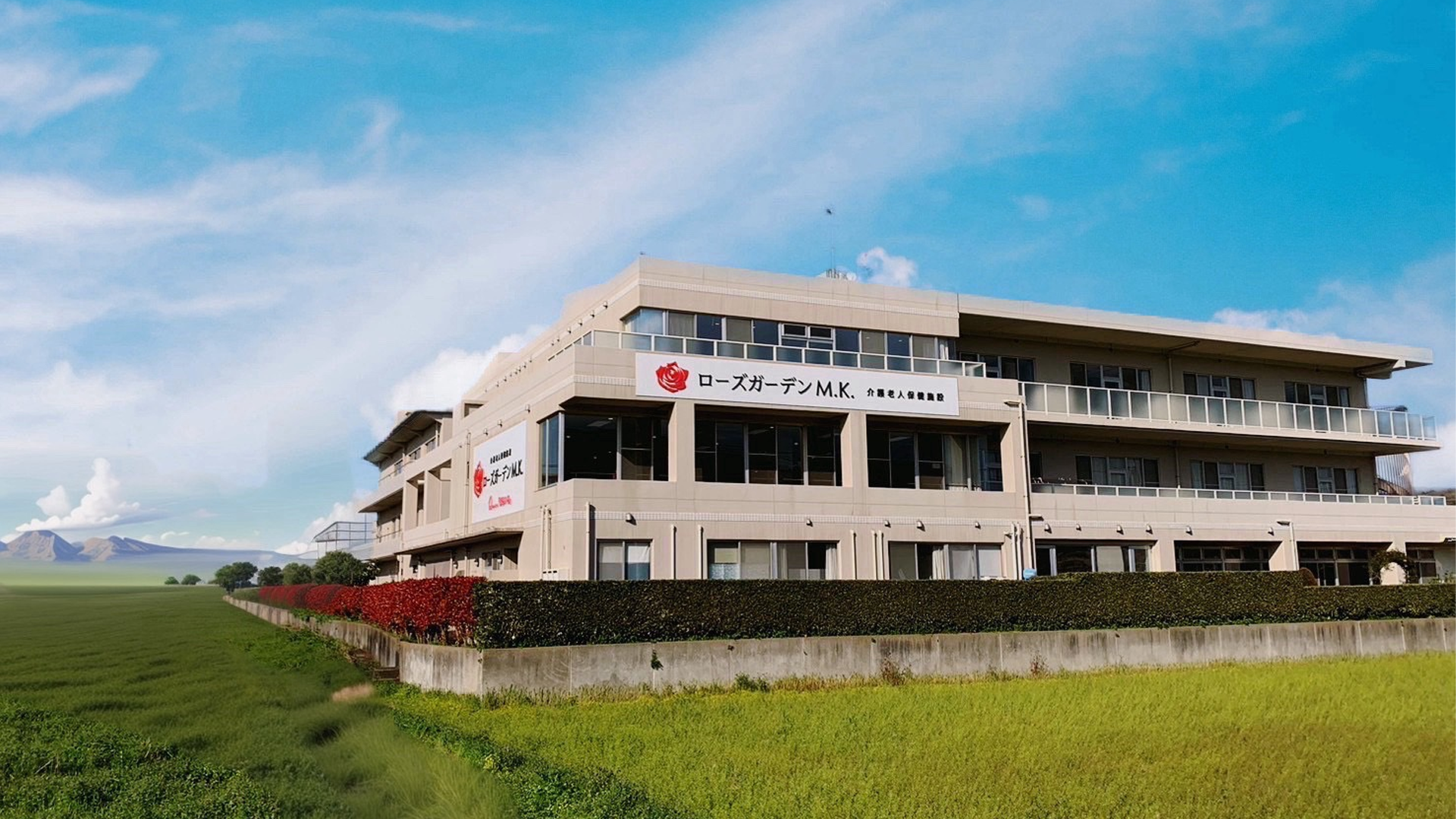 その3年後に高齢化する日本の課題と向き合うため、同じく東区名子の風光明媚な田園地帯に入所者100名のキャパを持ち、デイケア施設を包含した介護老人保健施設「ローズガーデンM.K.」を開業、国内で増加する認知症の対応施設として同敷地内にグループホーム「ばらいろ」を開設、関クリニックは「はーとクリニック」と名称を変えました。