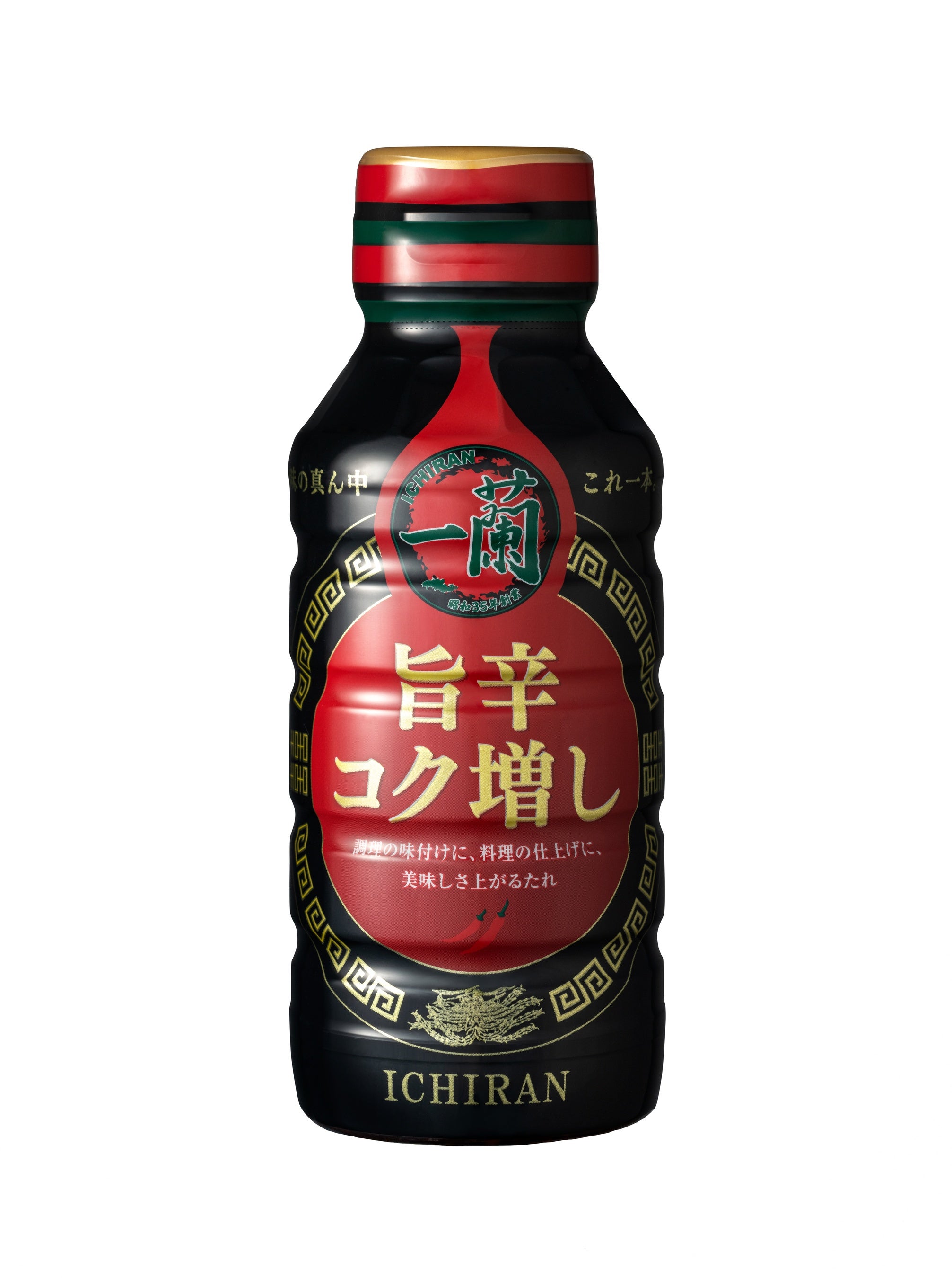 「一蘭 旨辛コク増し」新発売!辛さと旨さの絶妙なバランス。「赤い秘伝のたれ」のノウハウを背景に一蘭好き待望の新しいたれが誕生!ラーメンだけではなく意外な料理にも合う!