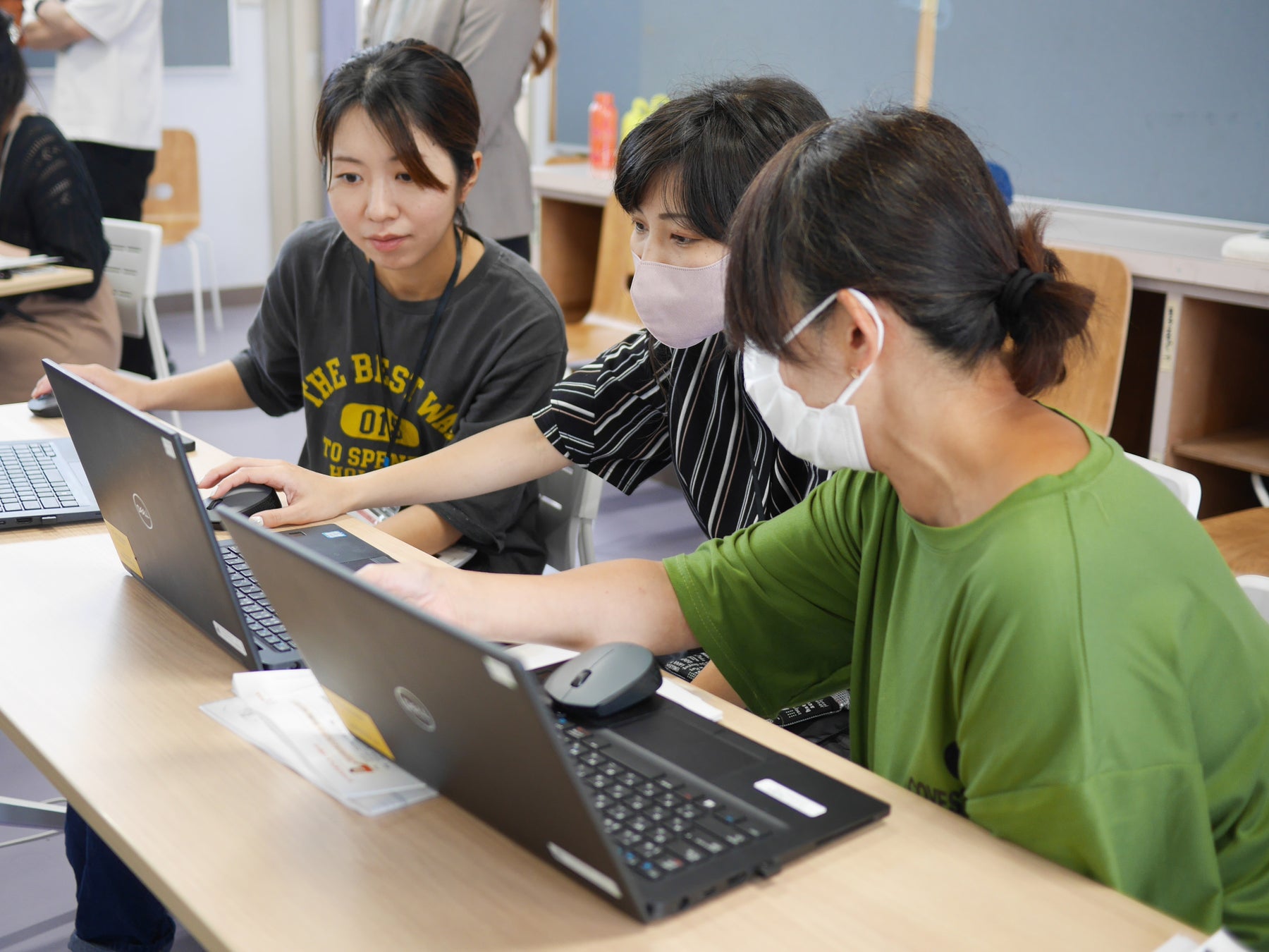 オンライン学習と対面講座を組み合わせた今回の研修プログラムでは、パソコンを使って仕事ができることを目指し、ITの基礎知識やエクセル、コミュニケーションなどのソフトスキルに加え、「MOS」やIT系国家試験の「ITパスポート」などの資格取得を目指した講座も実施しています。また、講座開催時にはパソコンの貸出や託児サービス、学習場所の提供、少人数の初心者講習、集合学習の機会、LINEの活用など、子育て世代を含む地域女性が学びを継続しやすいよう工夫しています。