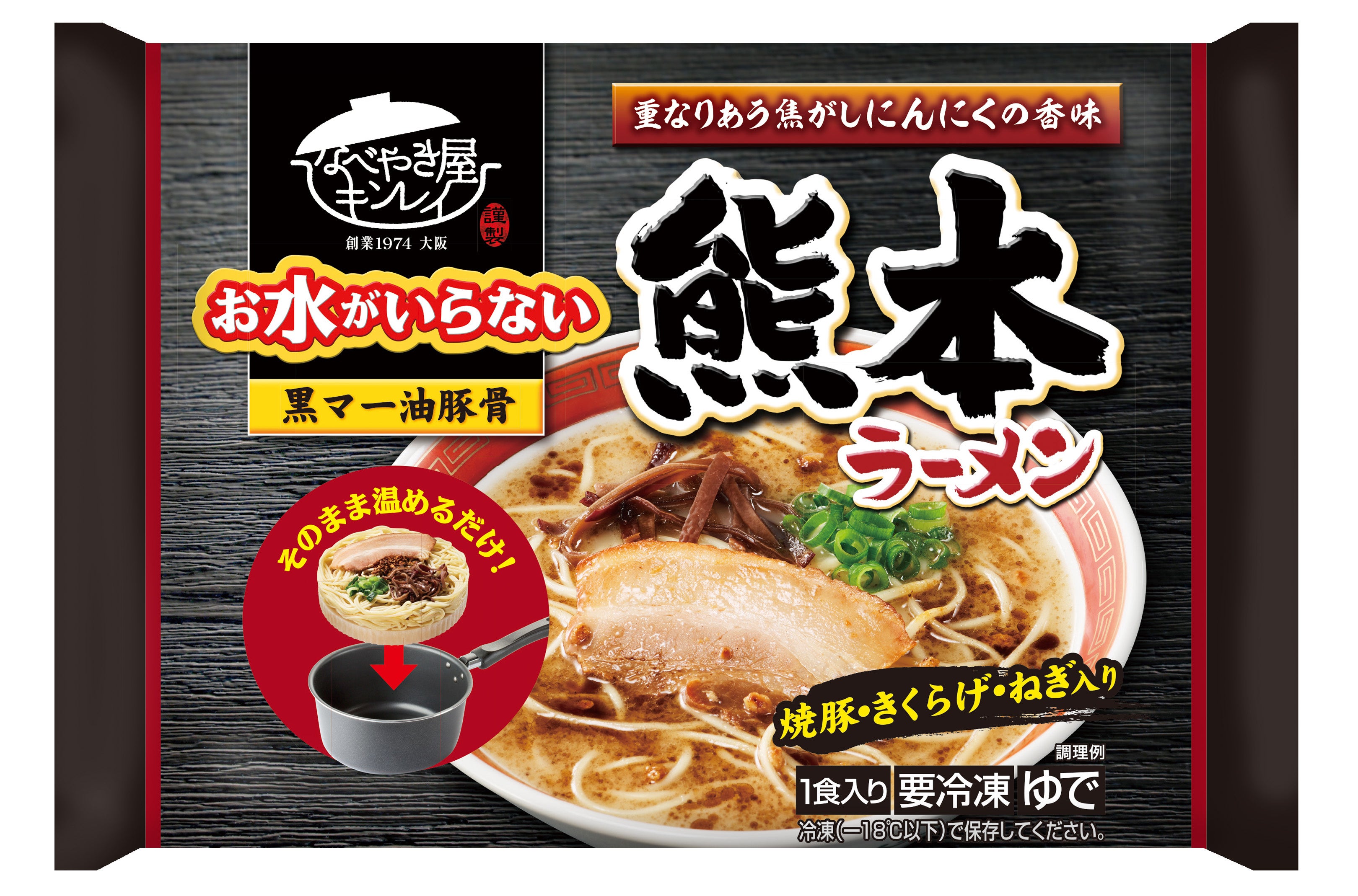 ラーメンデータバンク監修のもと開発を行っており、自社で炊き出した豚骨スープに自社製焦がしにんにくと黒マー油を加えることで、やみつきになる味わい深いスープに仕上げています。また、麺はパンチあるスープの旨味に負けない中太ストレート麺をあわせました。