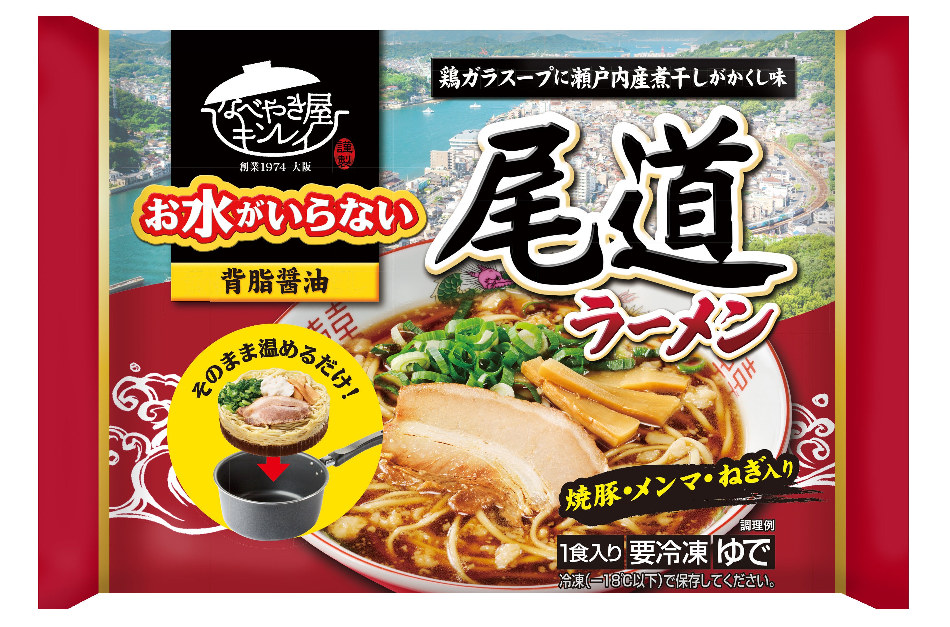 尾道観光協会による推薦のもと開発を行っており、自社で炊き出した鶏ガラスープに瀬戸内産煮干しや小豆島の醤油をあわせ、仕上げています。背脂の旨味がとけ込んだスープには、コシのある平打ちストレート麺をあわせました。
