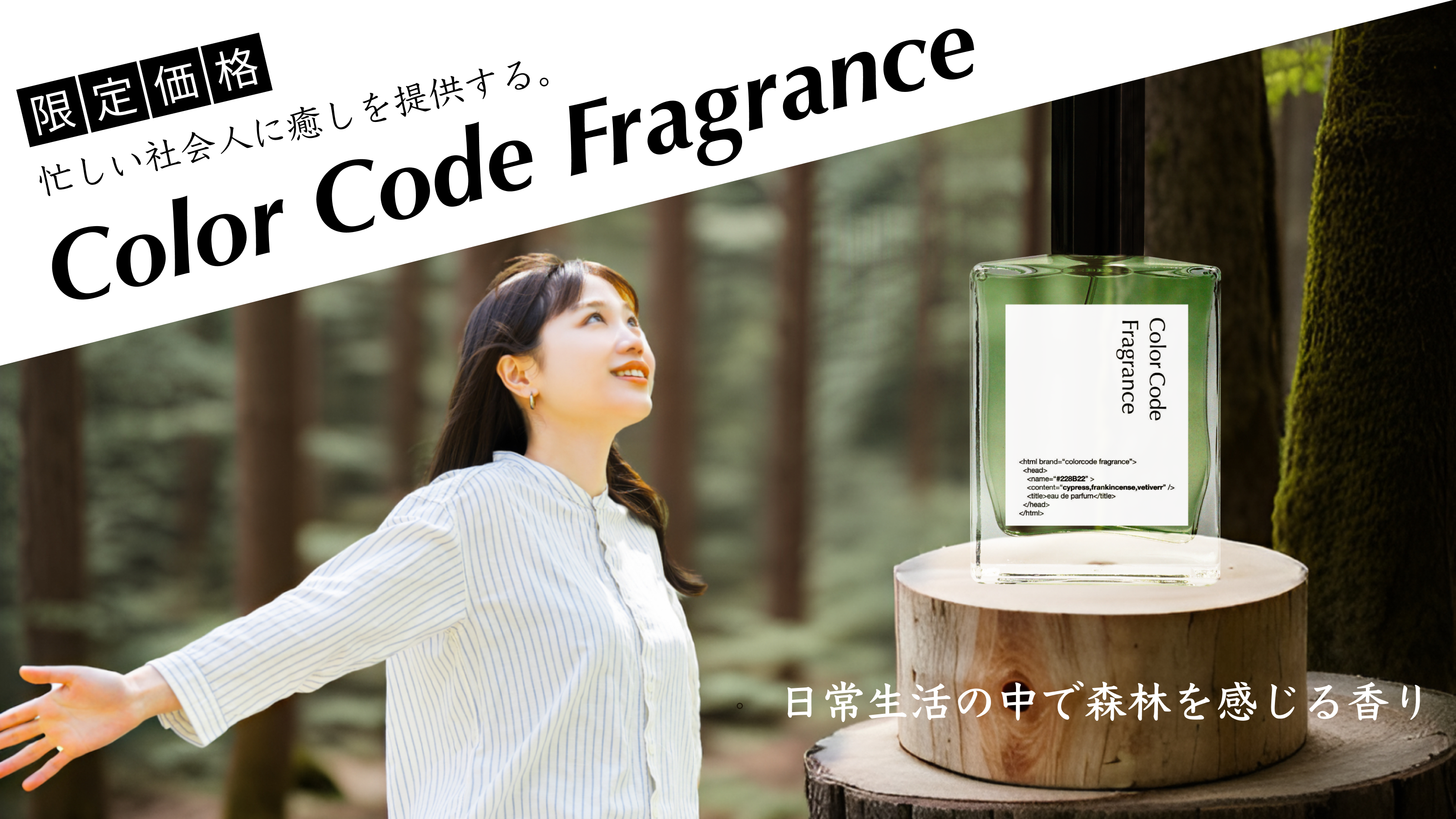 コンセプト: 「忙しい社会人に癒しの時間を提供する。日常生活の中で森林を感じる香り」