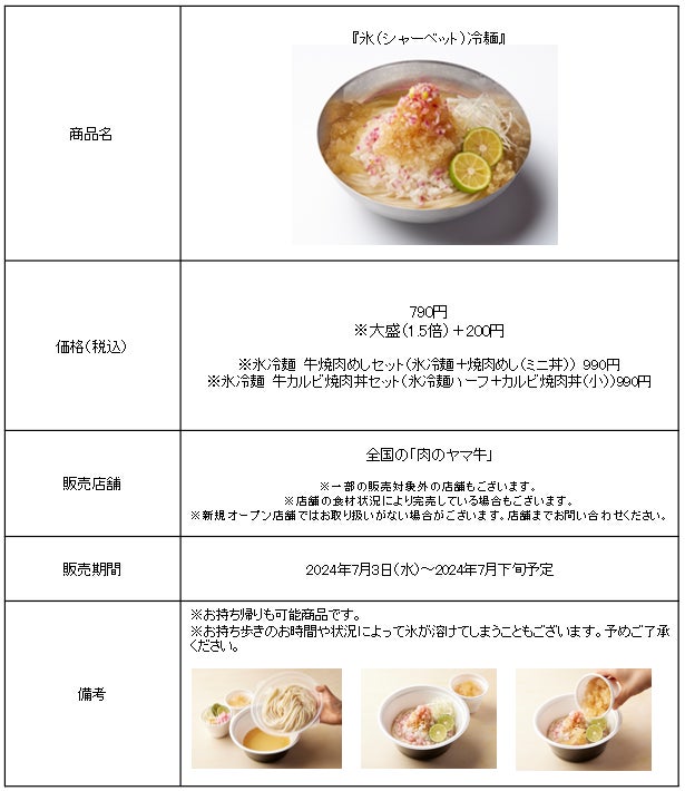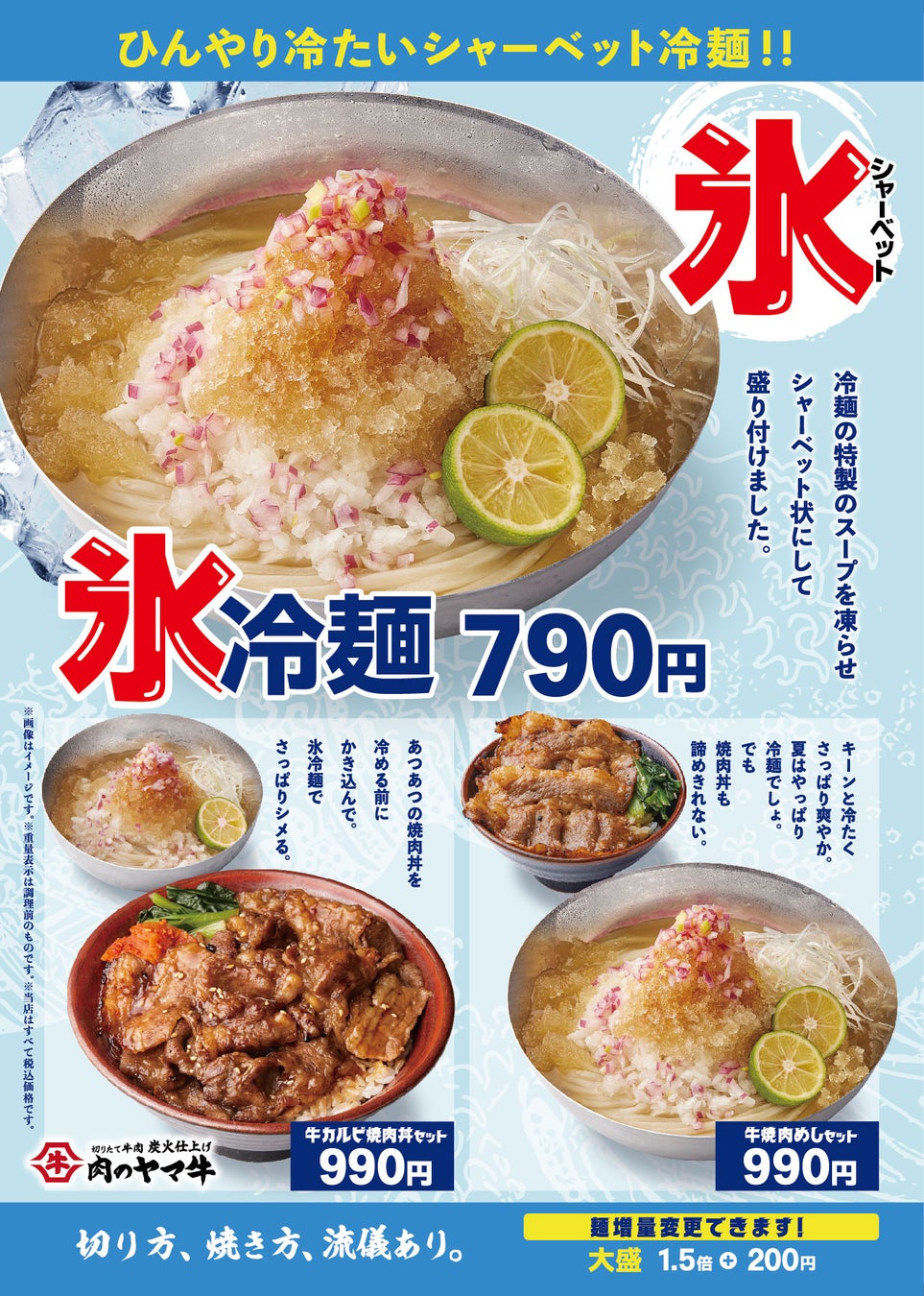 猛暑が予想されている今年の夏に向け、焼肉丼のみならずのどごしの良いコシの強い冷麺で体をクールダウンしていただければという想いで『氷冷麺』シリーズを新発売いたします。