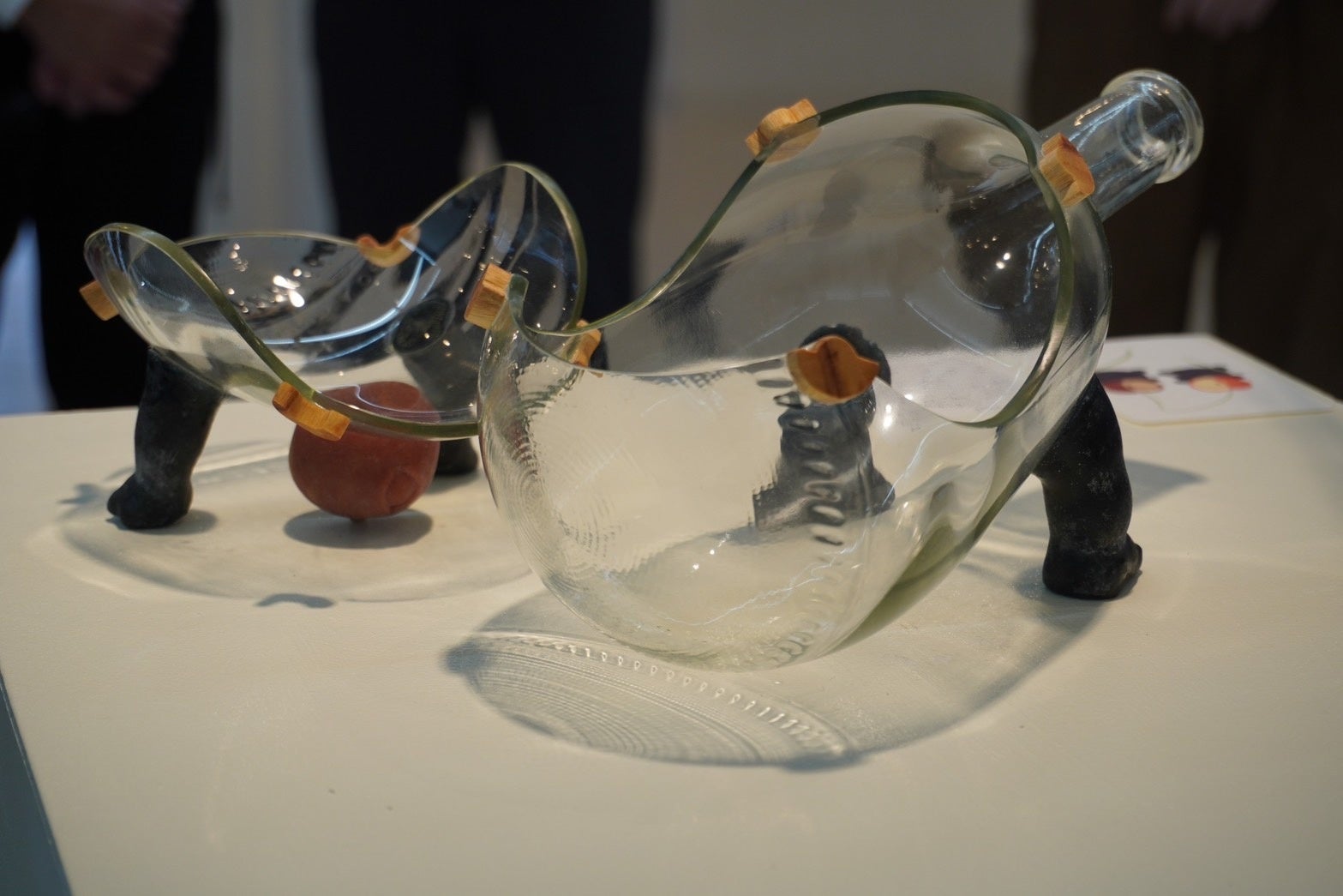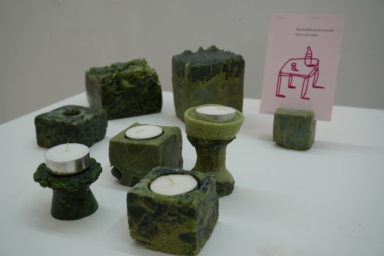 ワインボトルの回収は、一人一人に対しては小さいことだが、何か不思議な未来を引き出せるかもしれない。私が今回作った作品も、もしかしたら何かを変えられるかもしれないという思いがあります。」