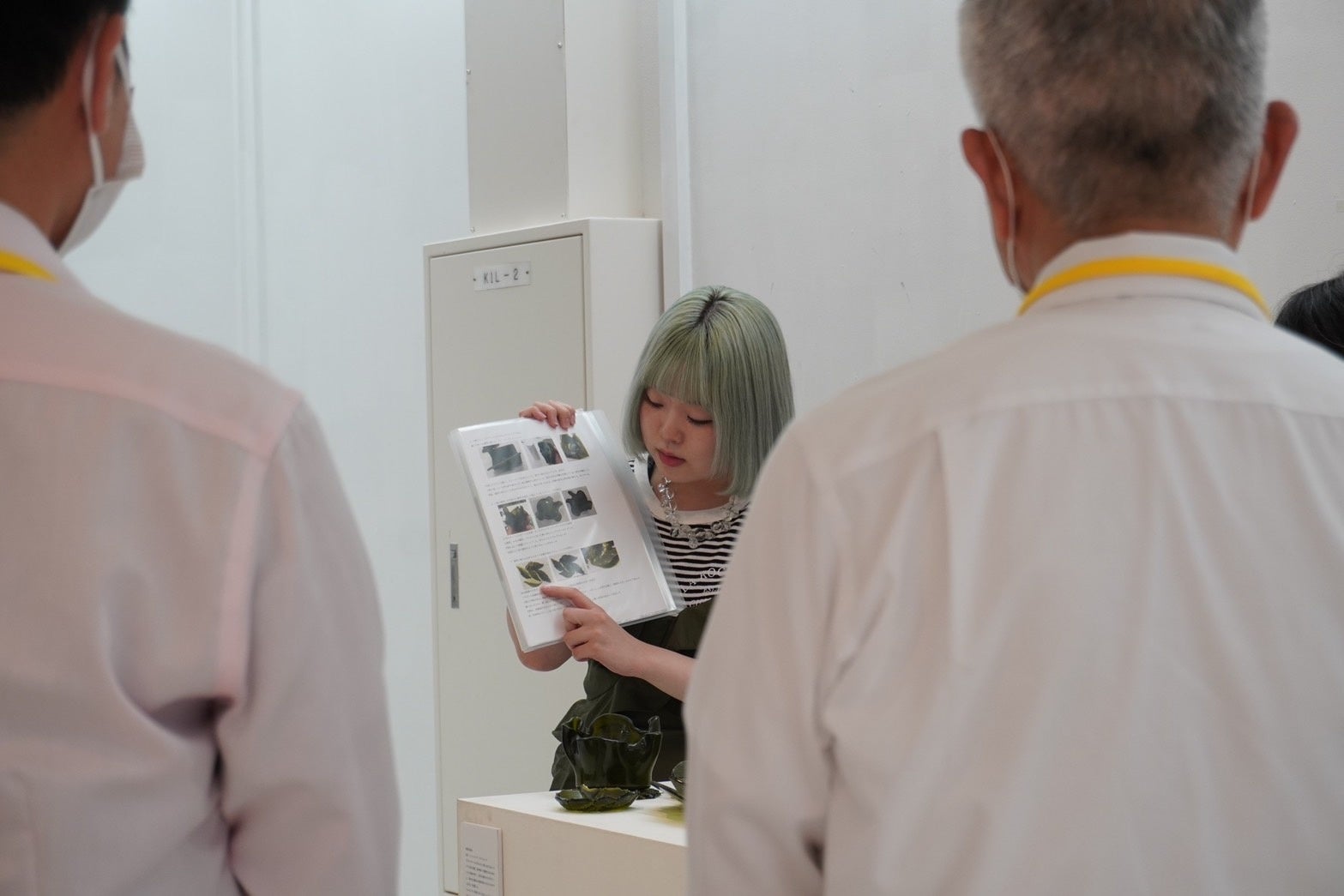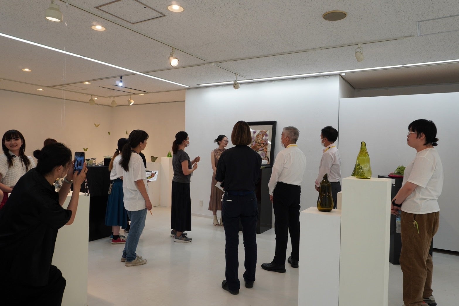 ガラスでつくる蝶の華やかさ・繊細さ、そしてリサイクルによって環境問題に少しでも繋がってほしいという胡蝶効果(バタフライエフェクト)に願いを込めた作品を発表し、自身の想いを熱く語りました。