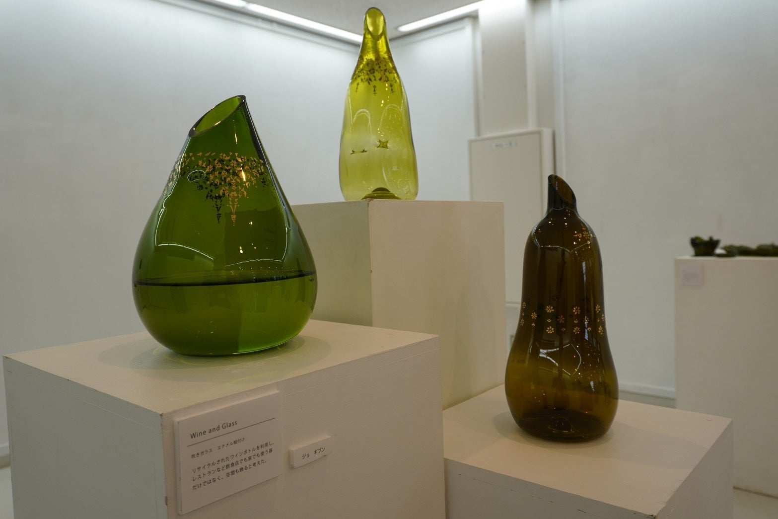 現在進行中の「ワインボトルリサイクルプロジェクト」は、女子美術大学の芸術学部デザイン・工芸学科工芸専攻ガラス分野の学生12名とコラボをし、ワインボトルの素材を用いて各々で作品に仕上げ、展示会での発表から一般の方々への販売までを行う取り組みです。