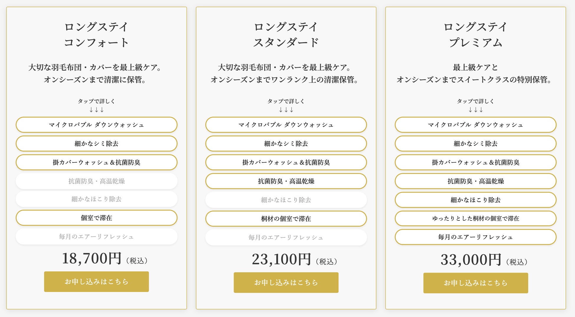 内容:羽毛布団のプレミアムケア(羽毛布団のプロによる洗浄やメンテナンス)と専用個室での保管