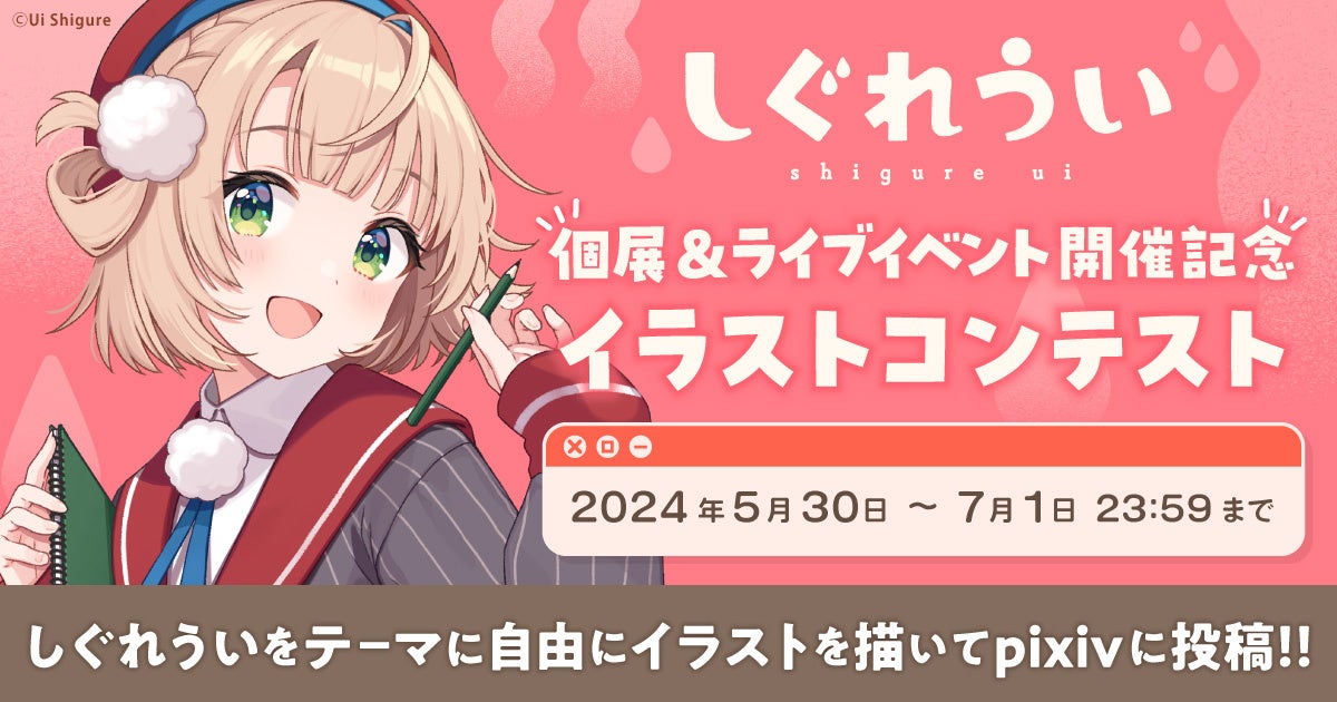 また、本個展及びライブイベントの開催を記念して、「しぐれうい個展&ライブイベント開催記念イラストコンテスト」を、イラスト、マンガ、小説作品の投稿プラットフォーム「pixiv」で実施します。本コンテストではしぐれうい氏のファンアートを募集し、優秀賞受賞者にはしぐれうい氏サイン入りのしぐれういグッズ詰め合わせが贈られます。また、優秀賞を含む受賞作品は本イベントにて販売予定の図録への掲載や、しぐれうい氏のYouTube配信内での紹介を予定しています。