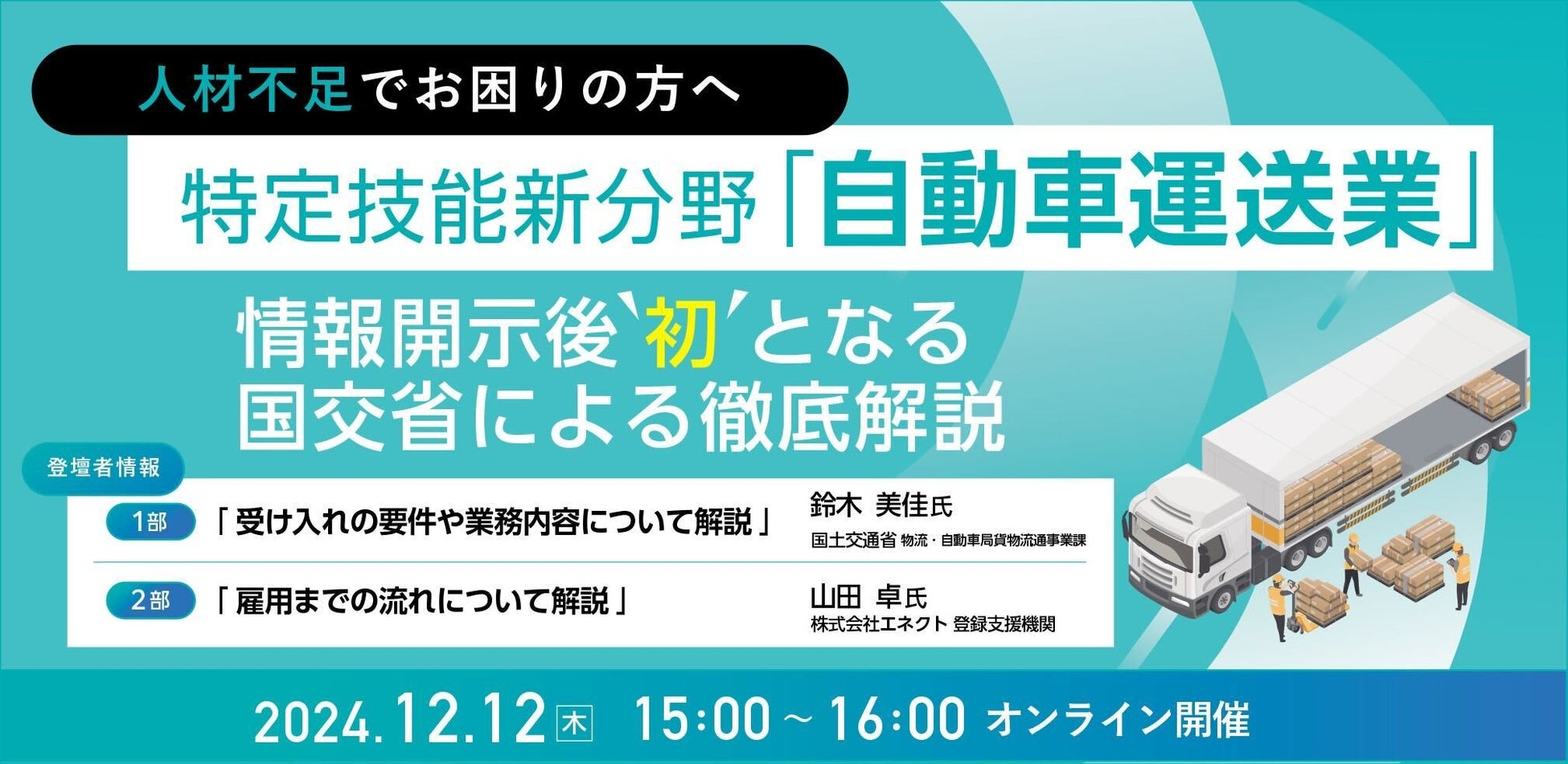 【情報開示後初!】「自動車運送業の特定技能活動緩和新制度に関する勉強会ウェビナー」に株式会社エネクト代表 山田卓が登壇いたします