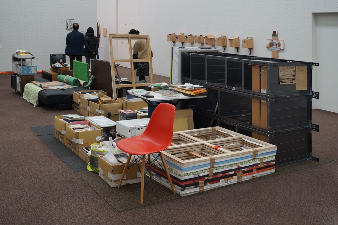 2025年、久保田荻須は2017年の卒業制作《一時的廃棄目録》を再構成します。本作は、生活空間に蓄積された家族の物品や自身の過去作品を取捨選別しながら、展覧会という場を生活環境の改善装置として活用するタイムスペシフィックなインスタレーションです。本展では、生活と制作が重なるプロセスの再演を通して、「R=再利用・再配置・再構築…」をめぐる行為を実践し、アーティストの生産物がいかにして取り残されるか、その資産性と負債性について観客に問いを投げかける展示となります。