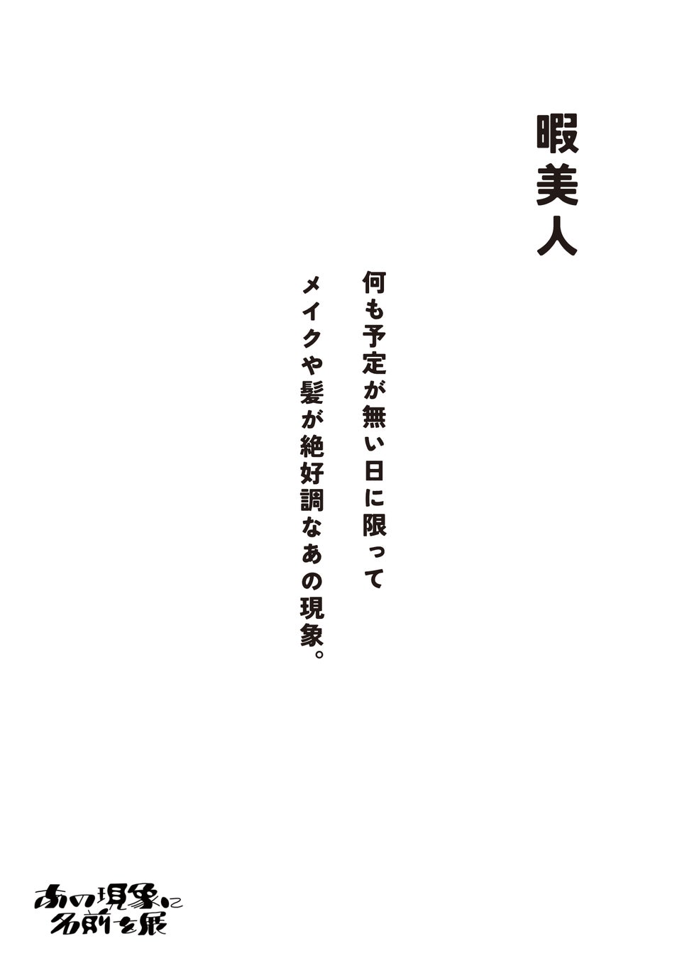 今回は同シリーズ最新作として『あの現象に名前を展DX』を開催します。前回同様、私たちが共通認識をしている名前のない現象【あの現象】にクスッと笑える名前をつけ、可愛いイラストで表現しました。