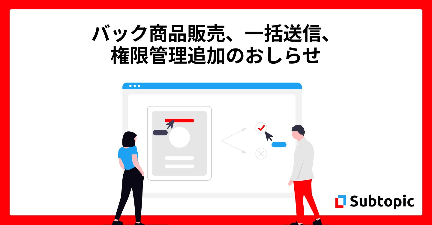 バック商品販売、一括送信、権限管理追加のおしらせ