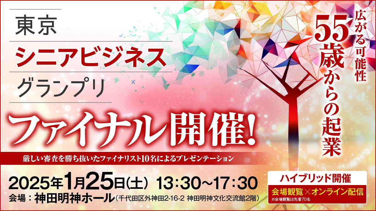 55歳以上対象のビジネスプランコンテスト「東京シニアビジネスグランプリ」ファイナルステージ 10名のファイナリストによる決勝大会 1月25日(土)13時30分~ 神田明神ホールにて開催!