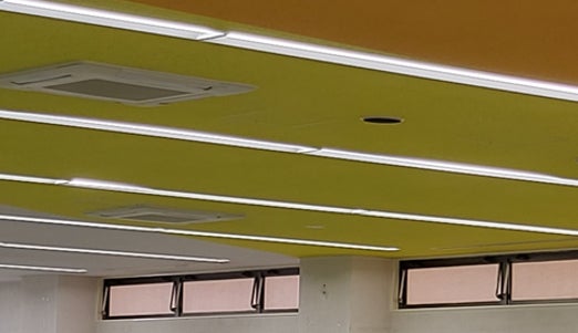 再生する「e-coat吸音板」、含め様々な壁や天井に対応しています。