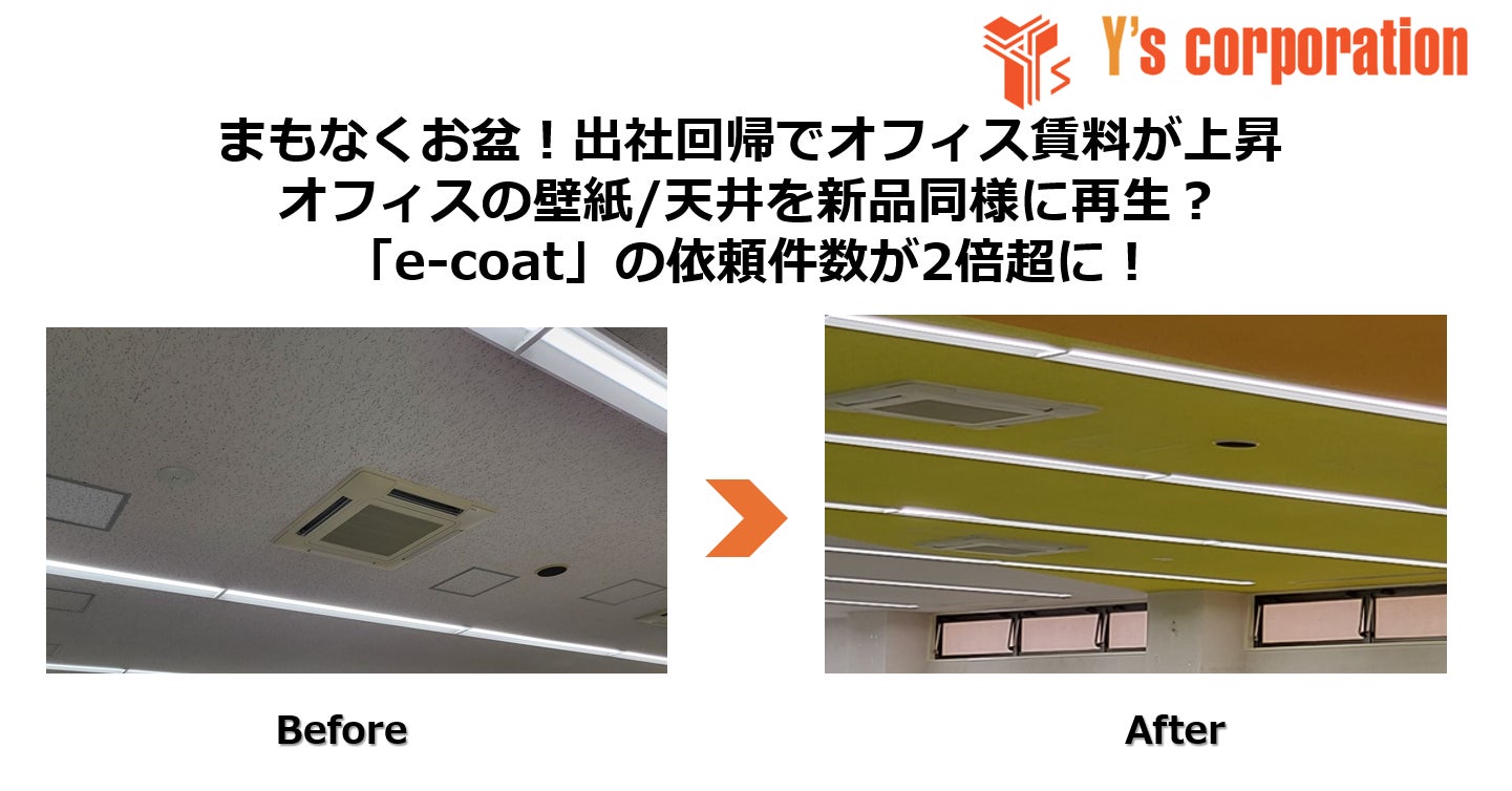 まもなくお盆!出社回帰でオフィス賃料が上昇オフィスの壁紙/天井を新品同様に再生?「e-coat」の依頼件数が2倍超に!