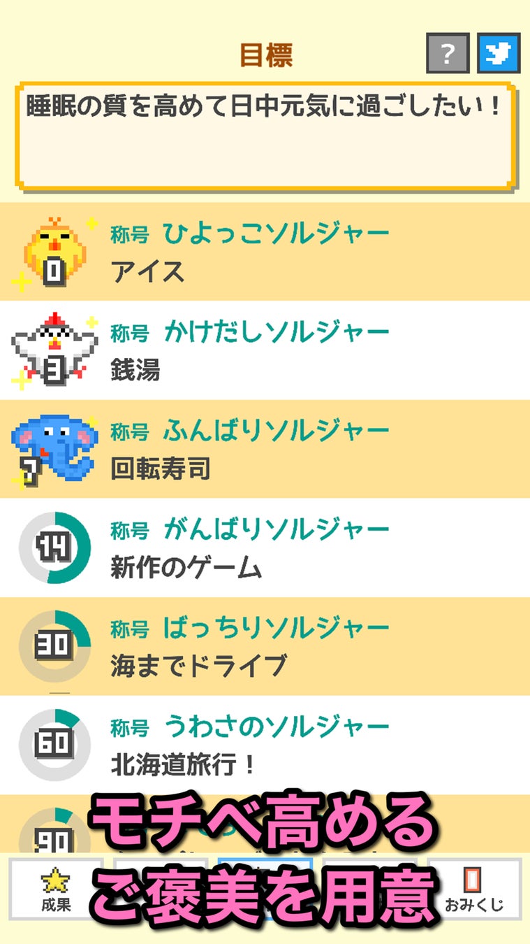 またキャラの進化する日ごとに頑張る自分へご褒美を用意することで、継続的にモチベーションが高められます。