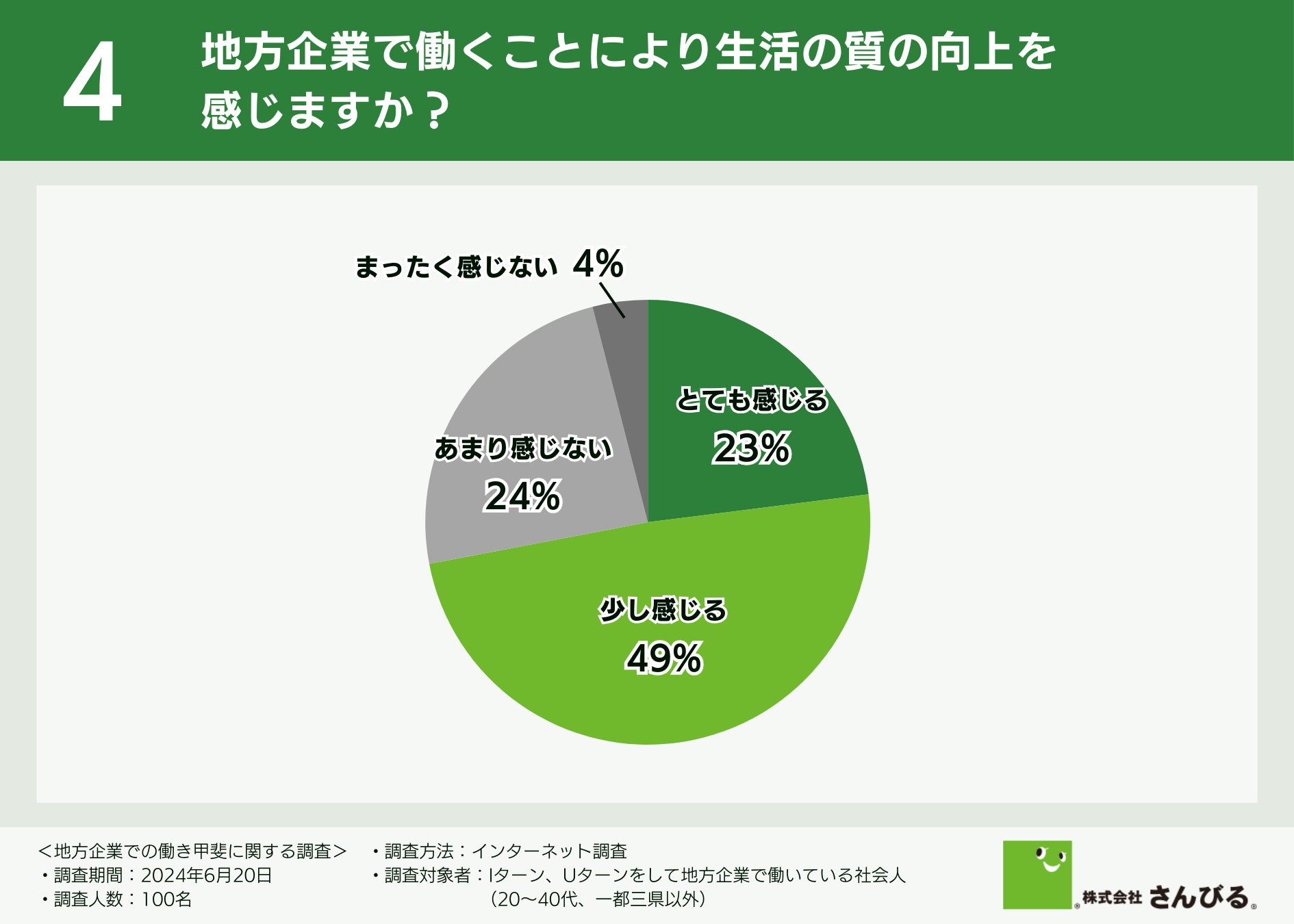 地方企業で働くうえでの課題が明らかになりましたが、地方企業で働くことにより生活の質の向上は感じているのでしょうか?