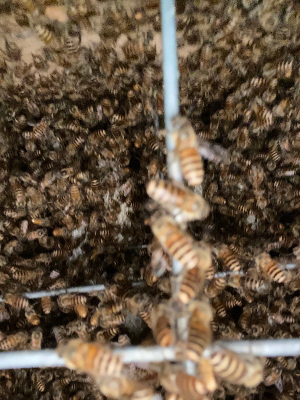 居心地の悪い場所には居着かず、よりよい環境を求めて逃去する習性があるニホンミツバチ。能楽堂の屋上を気に入ってもらえたようで、元気に棲みついてくれ、産卵や子育ても順調にすすんでいる様子を観察しております。今年は猛暑でしたが、夕涼みしながら、環境に馴染んでいったようです。