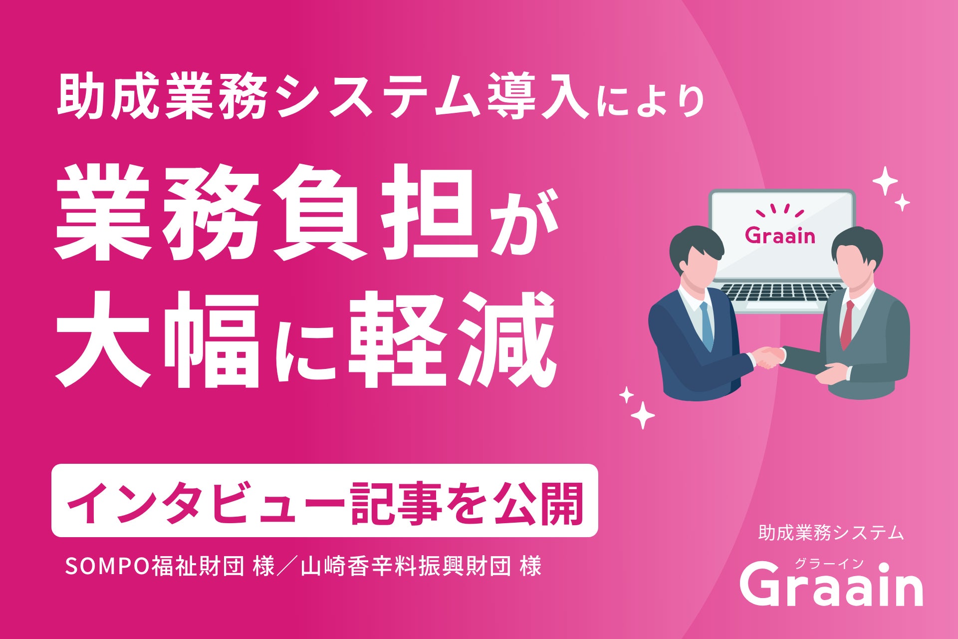 株式会社イットアップ(本社:大阪市中央区、代表取締役:小坂信太)は、当社が提供する助成業務システム「Graain(グラーイン)」の新たな導入事例として、公益財団法人SOMPO福祉財団様と公益財団法人山崎香辛料振興財団様のインタビュー記事を公開いたしました。