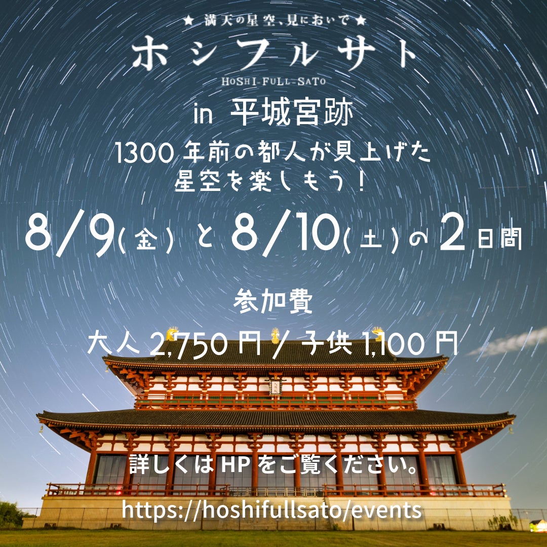 詳細はHP(https://hoshifullsato.com/events/20240809nara_heijo-park/)にてご確認ください。