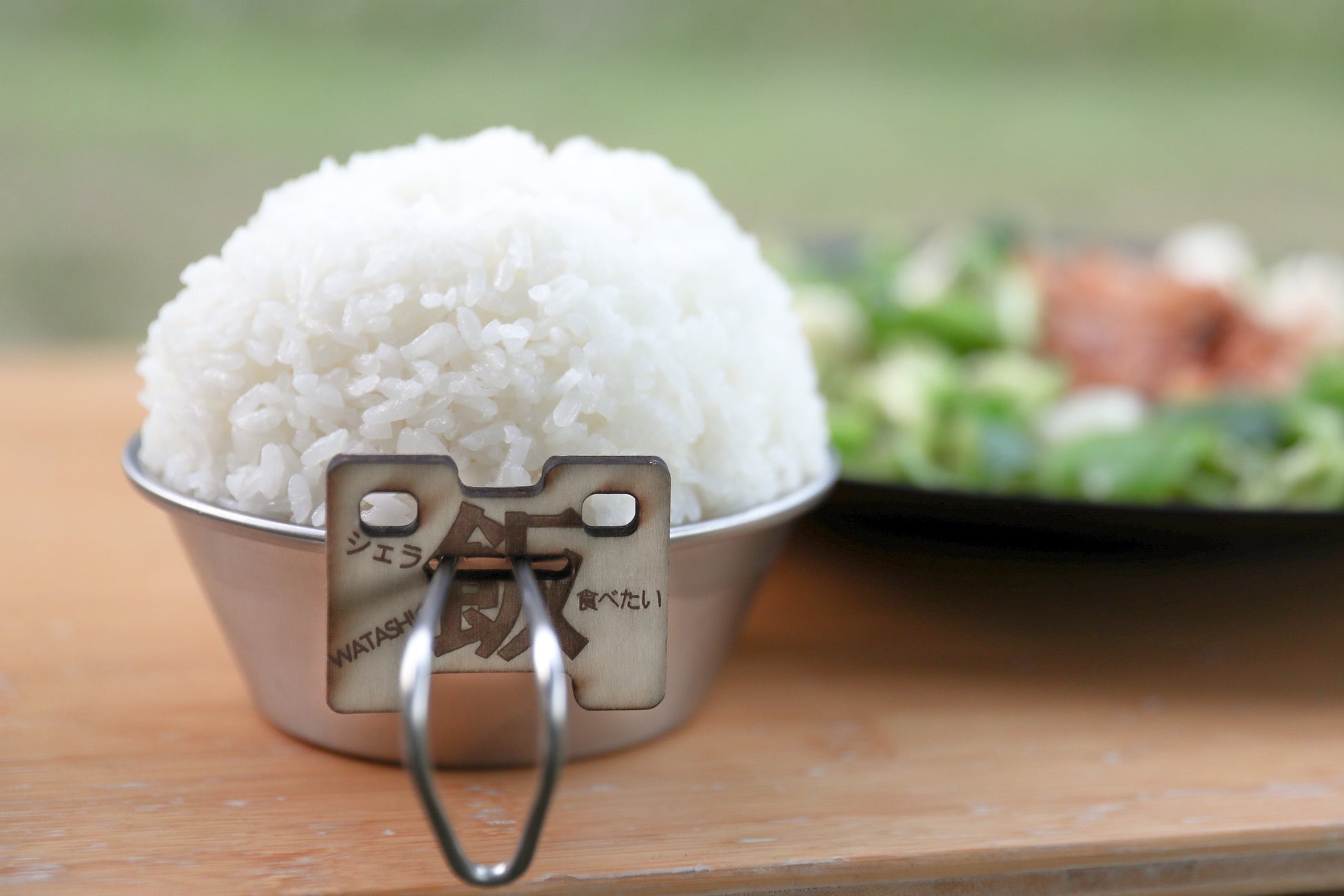「シェラのれん」はシェラカップに取り付ける新アクセサリーで、カトラリーを置く箸置きや持ち主の目印としての機能を果たします。今回用意したのは全3種。グループやファミリーでのキャンプの機会も増え、同じシェラカップを持つ方も増えている中、このシェラのれんをアタッチメントとして使うことで取り違えなどを防ぐことができます。