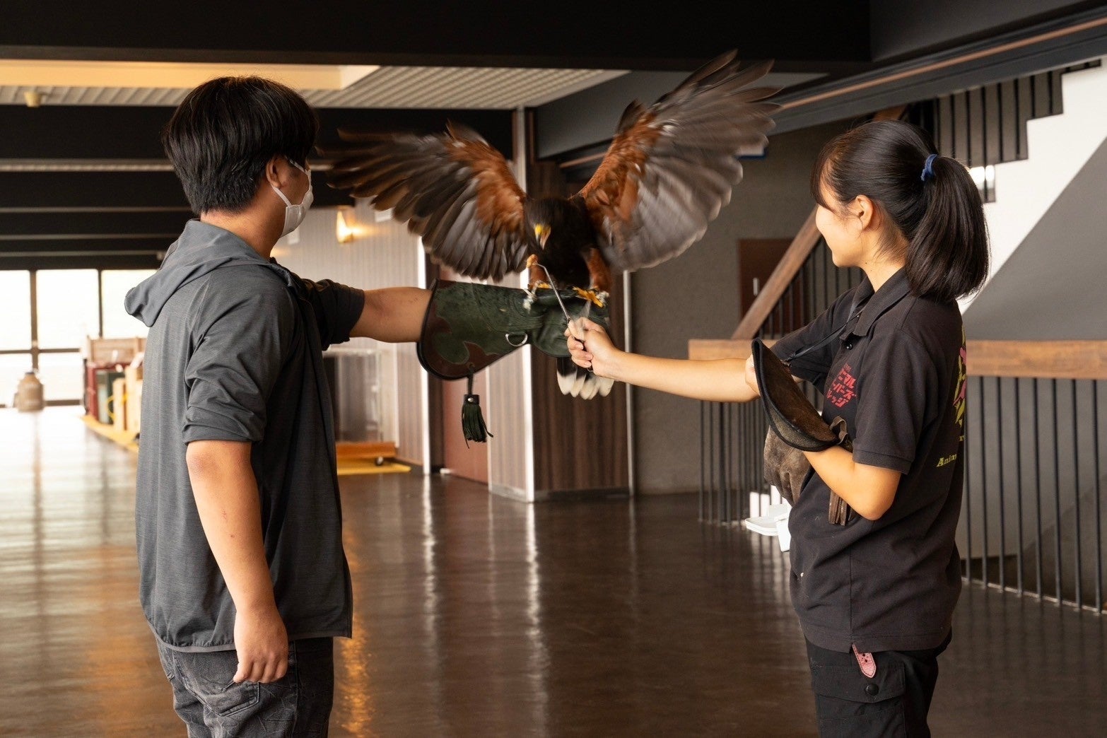 水族館や動物園で大人気のオットセイやアザラシなどの健康管理を行うハズバンダリートレーニングを公開、講堂ではタカやフクロウが頭上を羽ばたく非日常的な体験が味わえます。またこのブースでは鷹匠体験もできます。自分の腕にタカが飛んでくる姿は迫力満点!