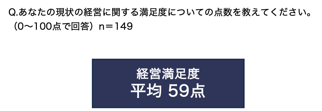 自身の経営の満足度に点数をつけた場合、平均点は59点とやや控えめな結果に。