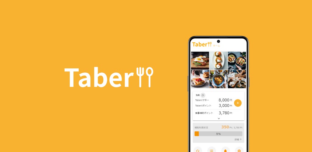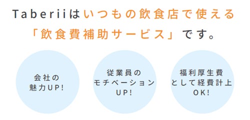 Taberii(食べりぃ)はスマートフォンさえあれば使用できるWEBサービスです。会社に食事補助制度の導入を支援するサービスとして活用いただけます。