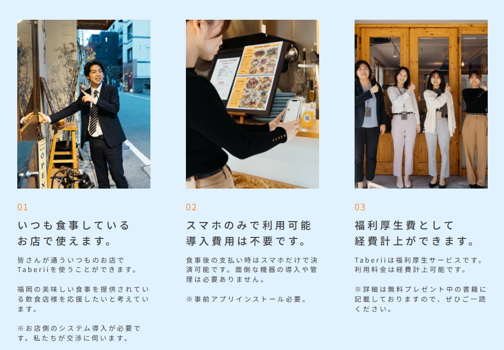 株式会社JCA(代表取締役社長:平木 誠)は、簡単な操作と少ない管理負担で食の福利厚生制度の導入をサポートするWebサービス「Taberii(食べりぃ)」をリリースしました。福岡地域に密着し、企業の経営者、従業員、飲食店のみなさんによろこばれ、愛されるサービスを目指します。