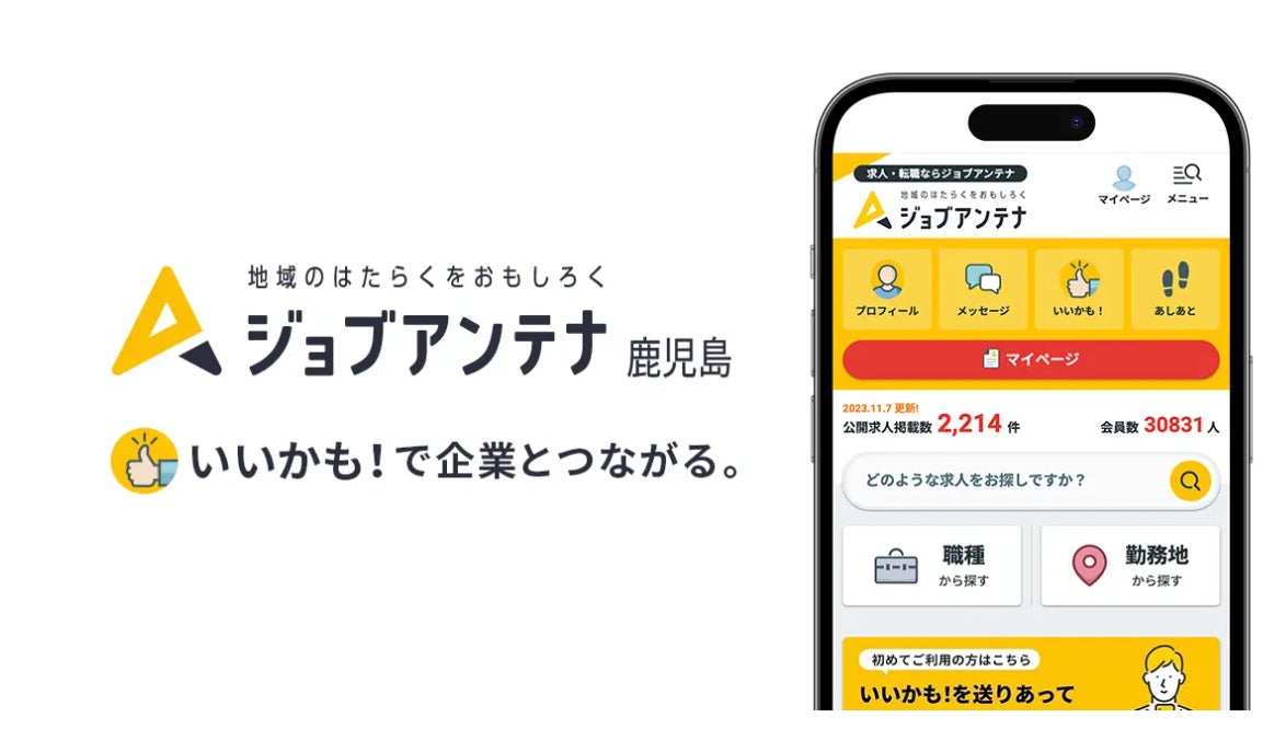 「ジョブアンテナ鹿児島」は、鹿児島エリア・鹿児島企業に特化した双方向な求人マッチングサービスです。2025年1月27日にグランドオープンし、36社132求人からスタートしました。鹿児島の人々が働きたい会社と出会える求人・転職メディアを目指し、企業と求職者がお互いに「いいかも!」というサインを送り合う機能やダイレクトスカウト機能を備えています。