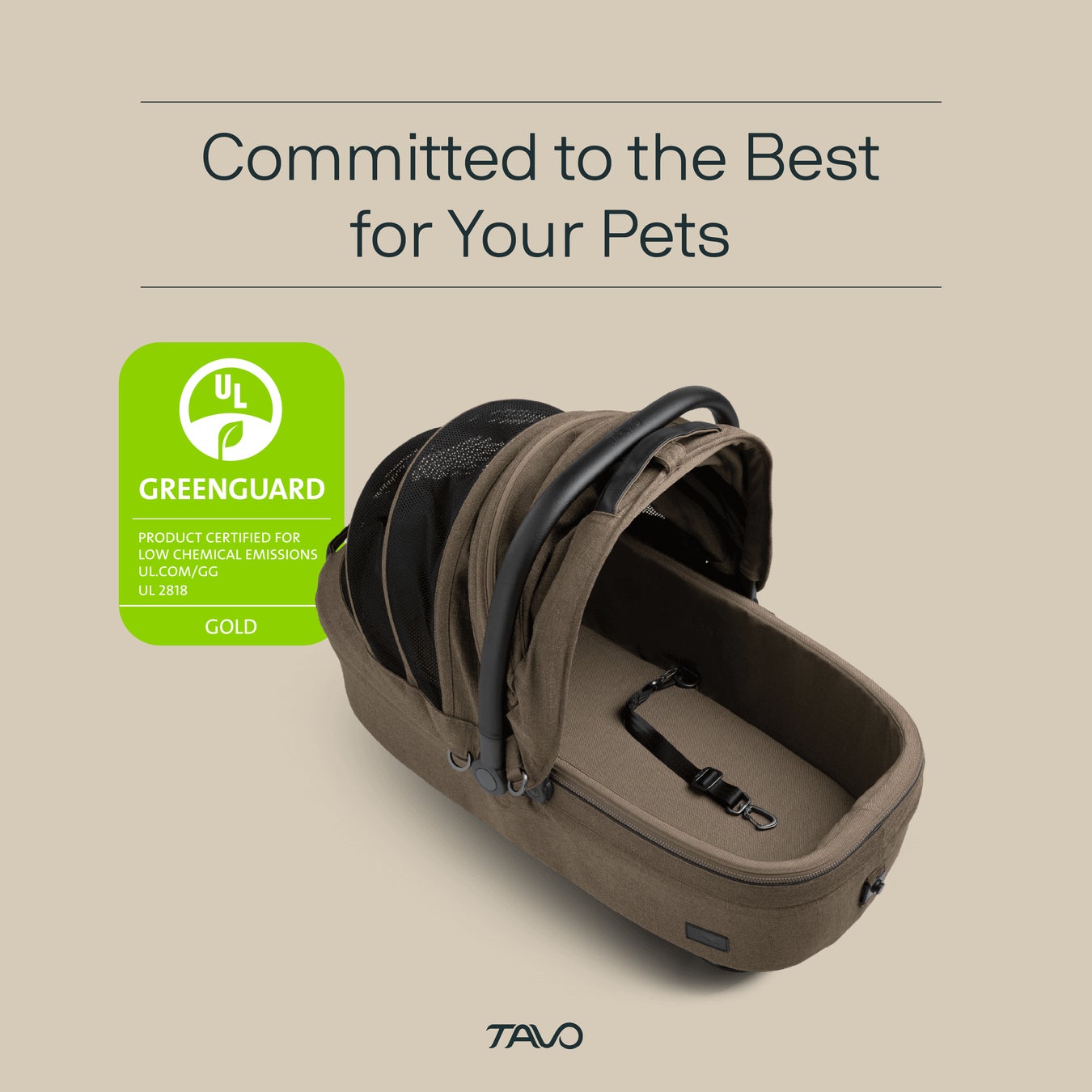 Tavoの製品はすべて、ペットに安全なだけでなく、より健康的な室内環境にも貢献します。GREENGUARDゴールド認証は、当社の製品が有害なレベルの揮発性有機化合物(VOC)を含まず、10,000以上の化学物質について検査されていることを示す世界的な認証です