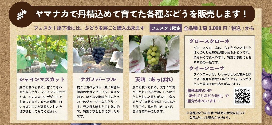 会場ではヤマナカが栽培するぶどう5種類を特別販売