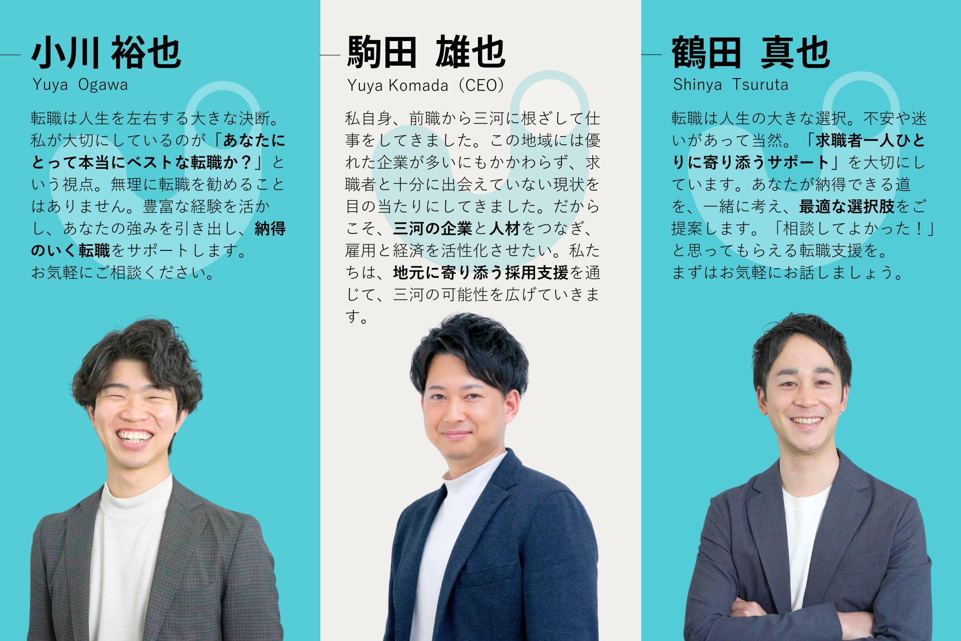 また、エージェントのネットワークを広げることで、より多くの企業が適切な人材と出会える環境を構築し、三河エリア全体の雇用の活性化に貢献していきます。