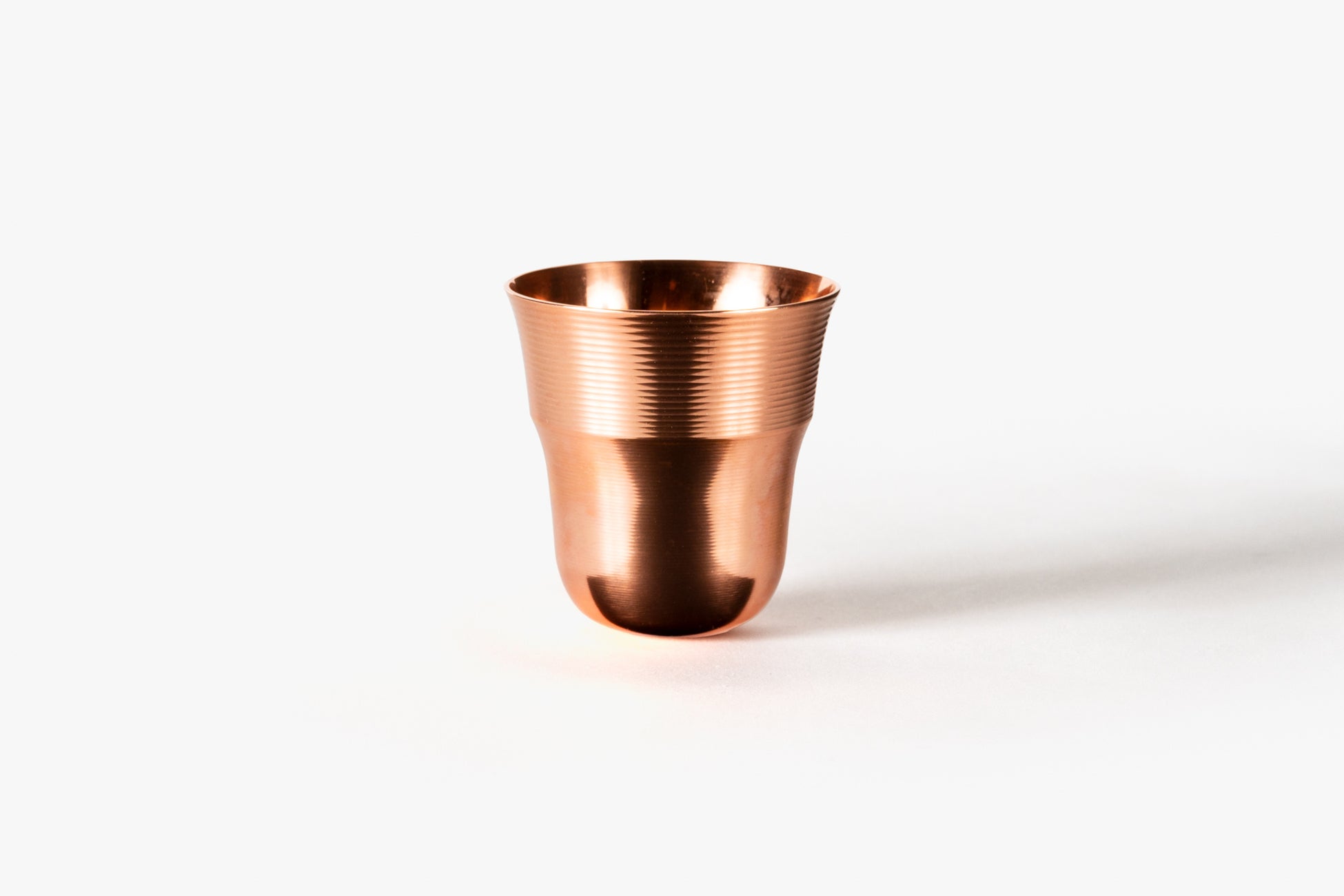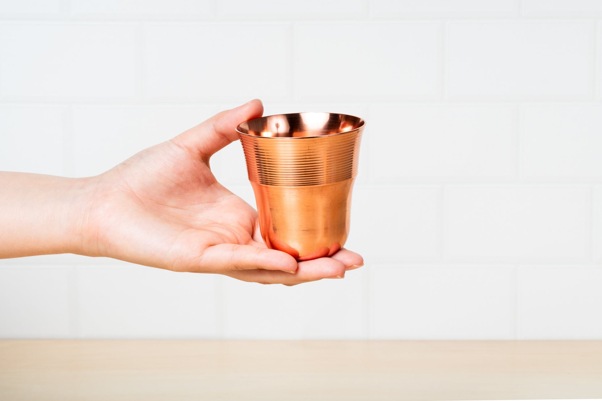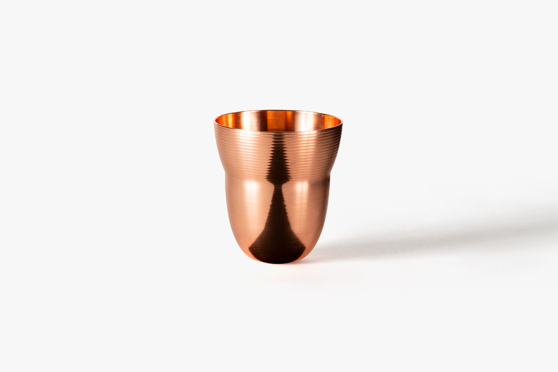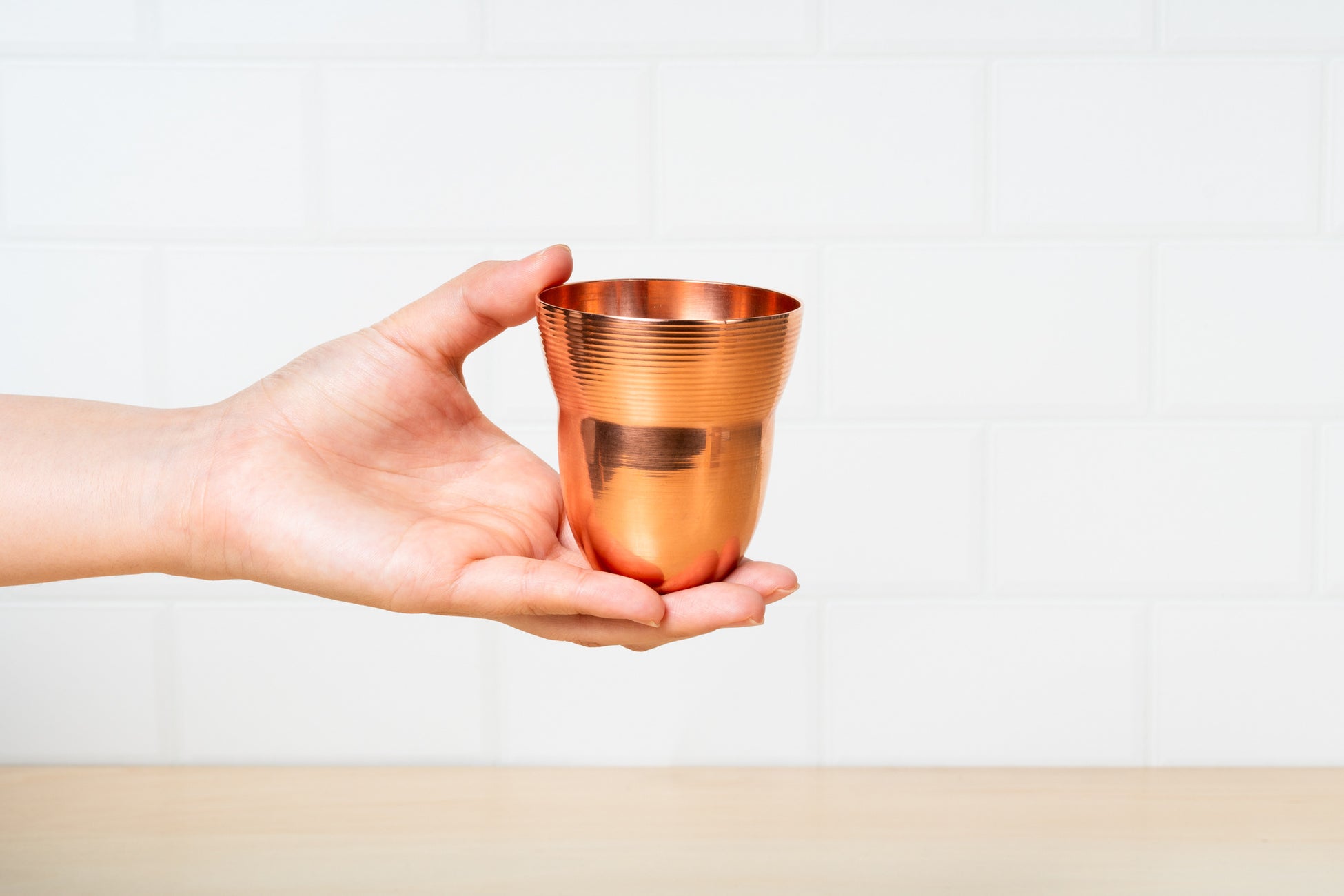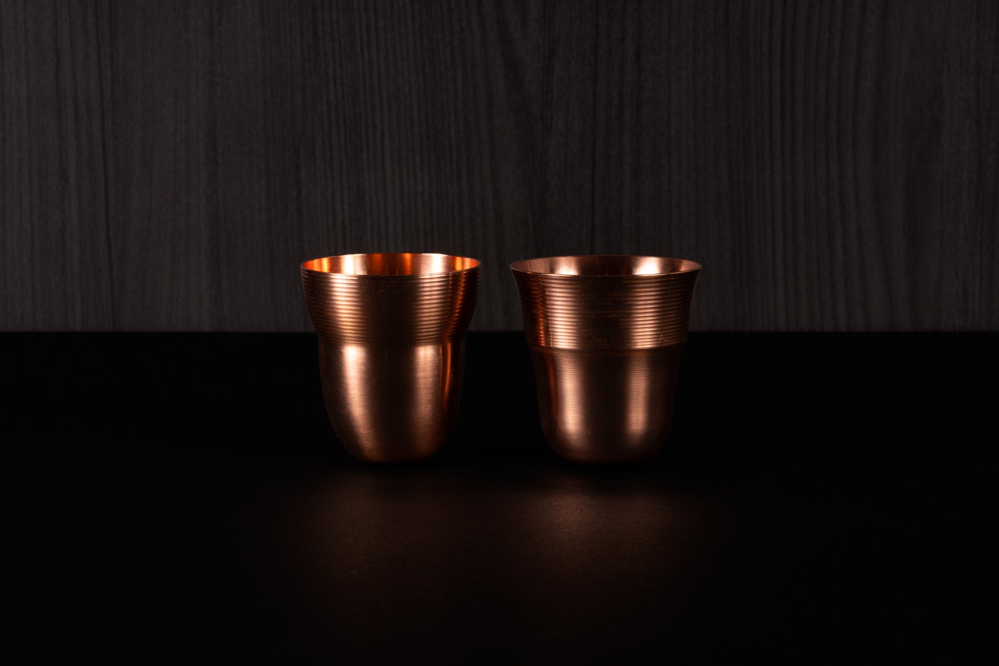 【SōI】東京江戸川区のヘラ絞りで有名な、高橋絞工業とのコラボレーションでうまれた、銅製の米計量カップ「Crease」を新発売