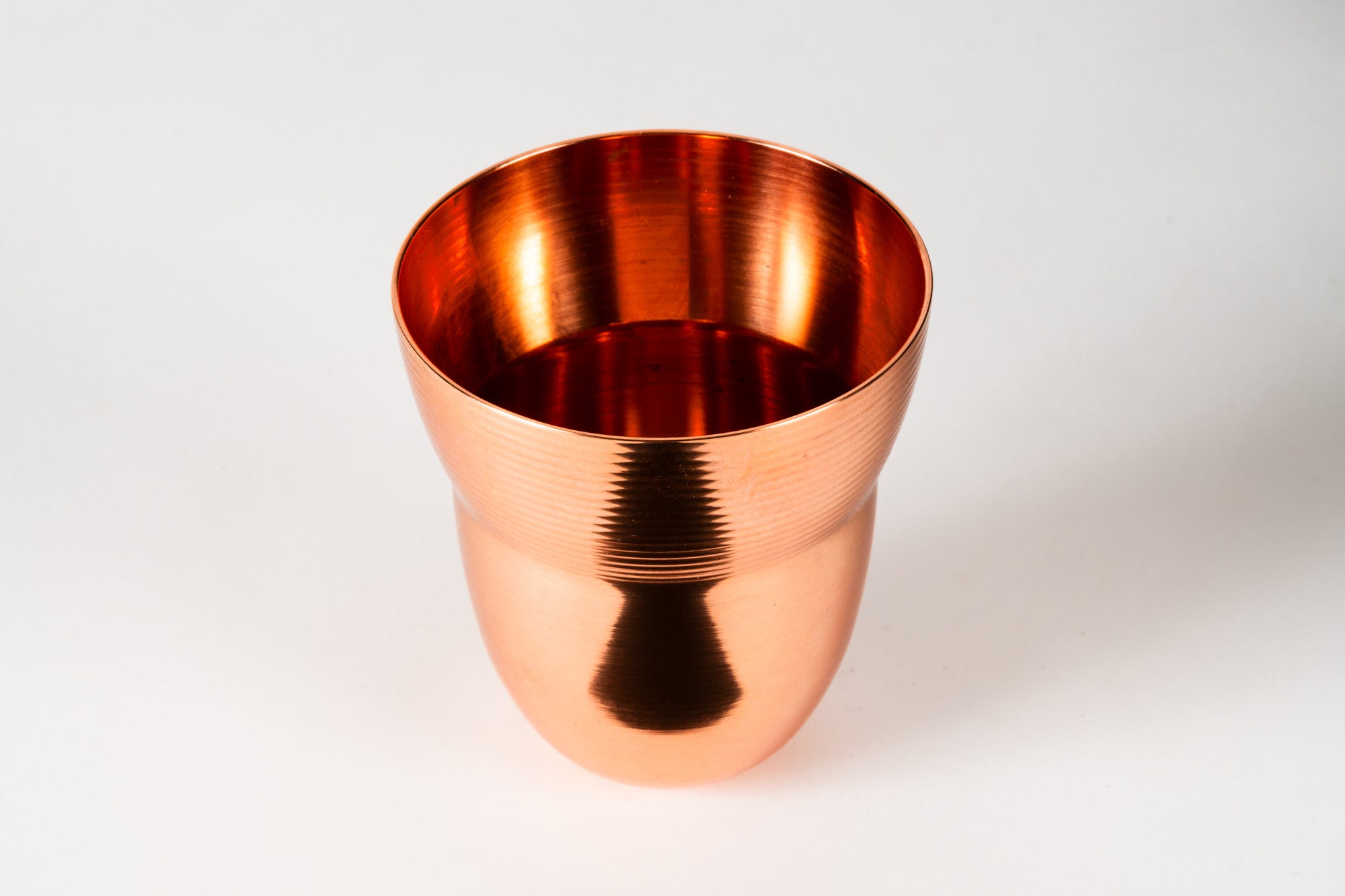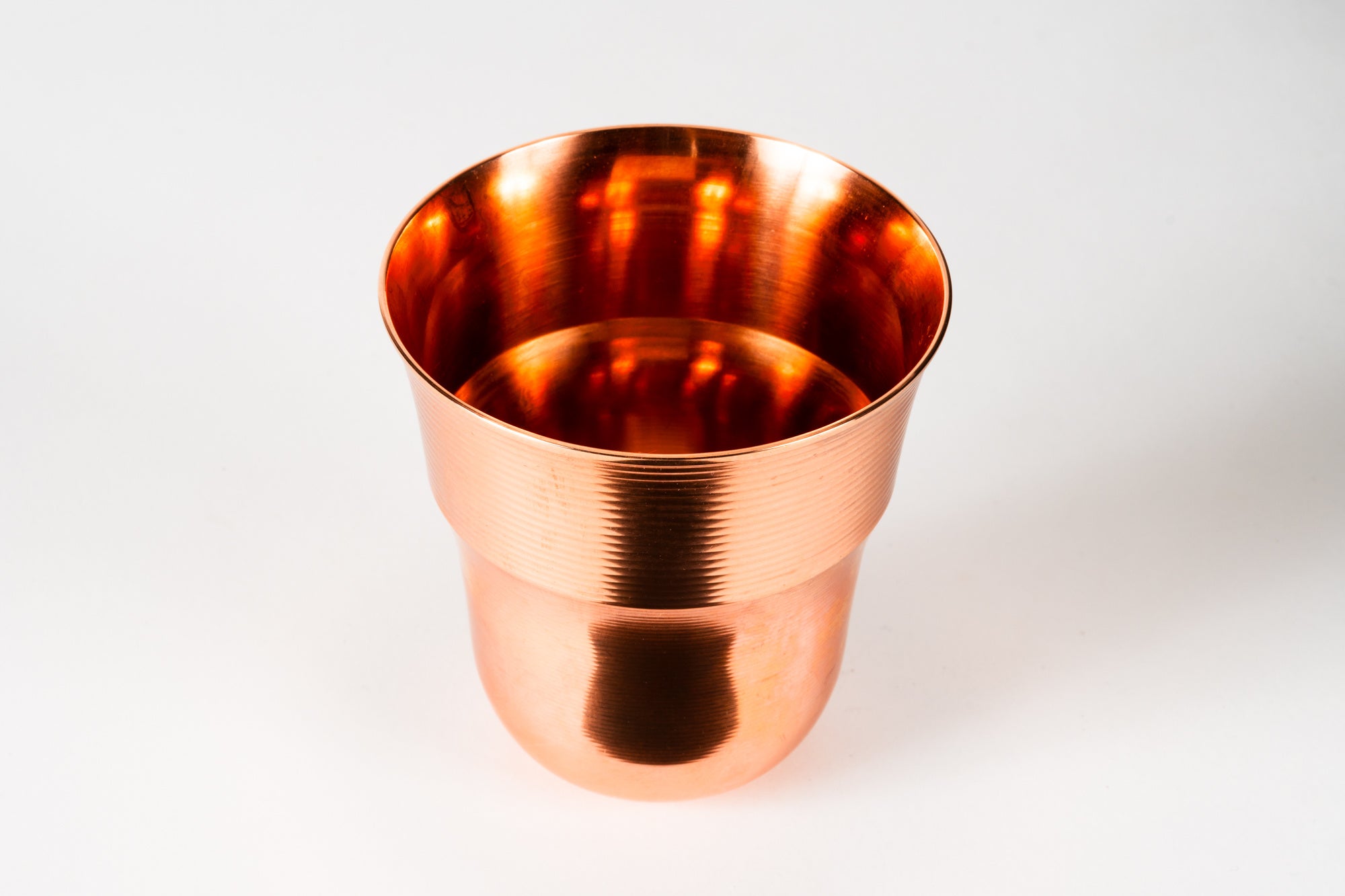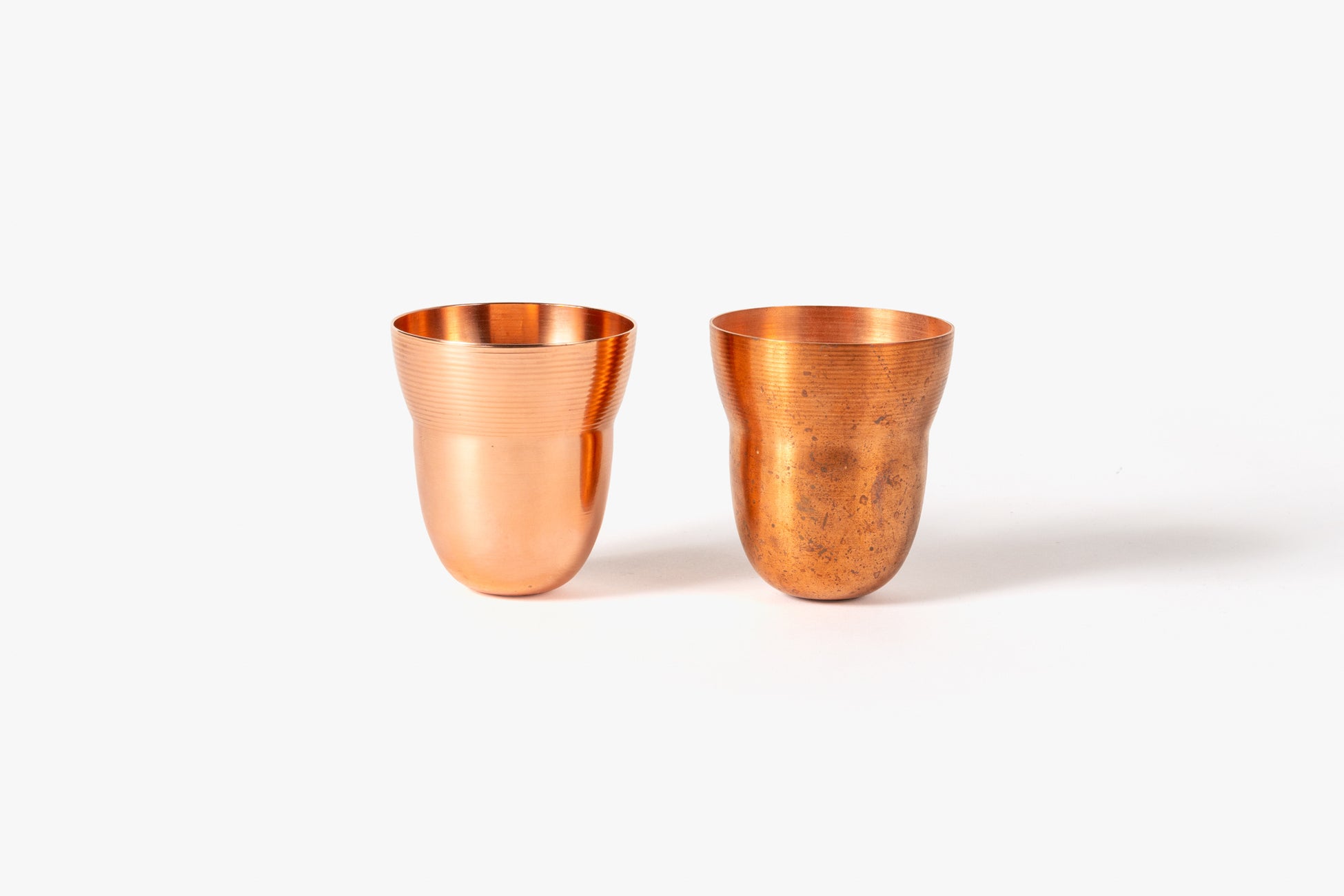 米計量カップとしての計測機能はしっかり満たしながらも日々使うものとして特別感がほしいと考えました。そこで素材を金属にしてみることにした。アルミ、ステンレス、などを試してみた結果、銅が一番しっくりきた。銅は見た目の美しさに加えて、素材特性として抗菌性がある。美しくて抗菌性のある米計量カップができるのではないかと考えました。